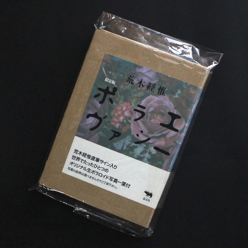 日本を代表する写真家・荒木経惟の写真集『ポラエヴァシー(限定版)』。こちらは2000年に刊行された荒木初のポラロイド作品集。それまでに撮りためられた2,000枚近い図版から選りすぐられた大量のポラロイド。ヌード・着物・緊縛から、竹中直人・中山美穂、チロ、スティル・ライフそしてストリートまで荒木色満載。巻末の写真評論家・飯沢耕太郎との対談も読み応えがあり、荒木が思うポラロイドの魅力がキーワードでまとめられています。「大人になれないカメラ」「秘密の匂い、危険な匂い」「すべてを『いま』にさせる」「女と人生は真四角で撮るように」などなど。以下荒木のコメントより「オレはよく『おイタ』というけれども、ポラには『おイタ』のセンスがあるんだよ。やんちゃな気分ってあるだろう。幼年から少年くらいの感覚の快感がある。ポラは大人になれないからね。だから「おイタ」にぴったりでさ。撮ってるとワクワクしてくんの」。こちらは限定版で、写真家サイン入りポラロイド付き。