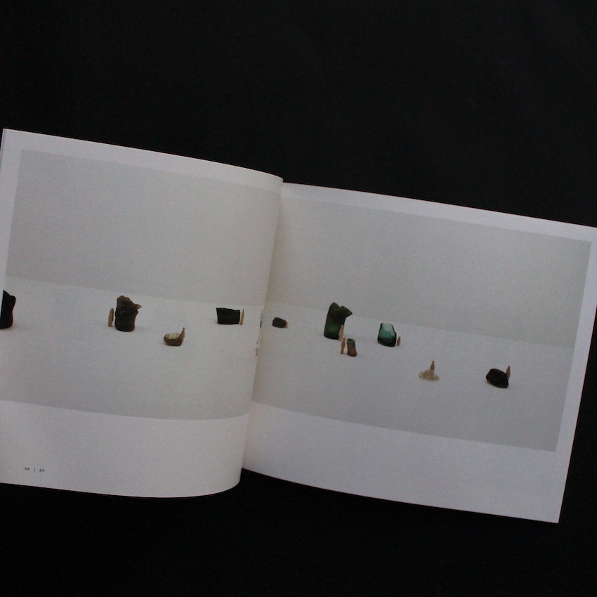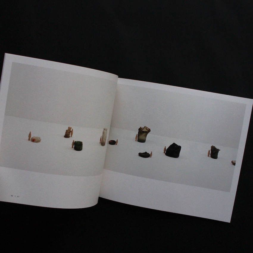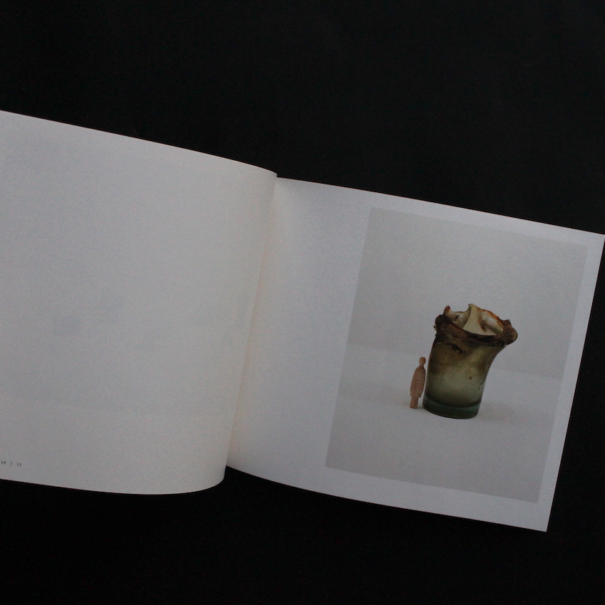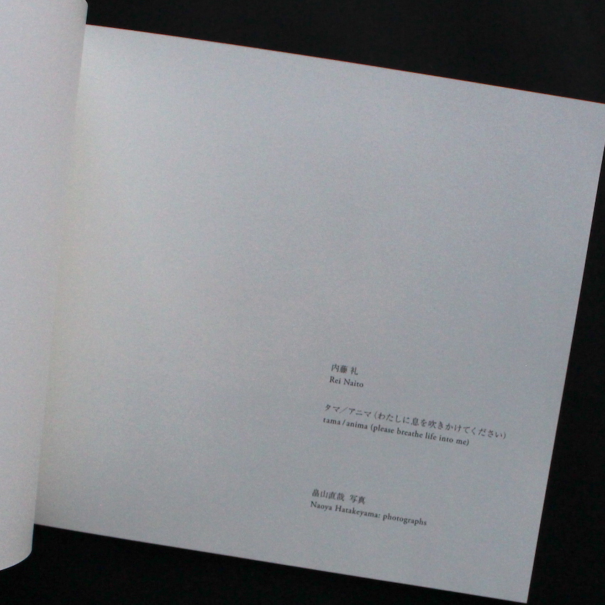 日本の女性アーティストである内藤礼の作品集『タマ アニマ / Tama Anima(わたしに息をふきかけてください)』。風・光・水・重力など自然の微細な「気配」を、観る者と共鳴する空間として可視化することで知られる現代美術家。内藤礼です。本作は、彼女が初めて「原爆」というテーマに向き合い、広島県立美術館で発表された作品で構成されています。被爆ガラス瓶を並べ、小さく彫られた木製人形とともに、訪問者が作品の端の水面に「息」を吹きかけ、波紋を生むことで生と死、祈りと記憶の瞬間を体感する装置的なインスタレーションとなっています。この作品は、畠山直哉による撮影を経て、2014年にはギャラリー小柳で写真展「タマ/アニマ(わたしに息を吹きかけてください)」として再構成。フォトドキュメントにより、展示当時の静かな祈りの場が、写真を通じても凝縮・伝達されました。また、フランス・パリにて2016年「トランスフィア」シリーズの一環として再展開されるなど、国際的な共鳴も得ています。こちらはギャラリー小柳での個展時のミニ・カタログです。