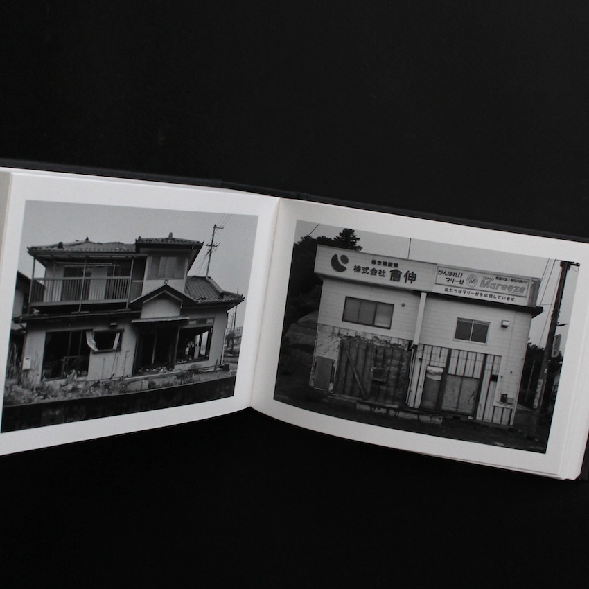 フランスの写真家アントワーヌ・ダガタの作品集『福島 / Fukushima』。1961年マルセイユ生まれのダガタは、マグナム・フォトに所属しながら、世界各地の社会の周縁や人間の極限状態を撮り続けることで知られています。自己の肉体や経験をも撮影の対象に含め、写真・映像・文章を融合させた強烈な表現を展開し、現代ドキュメンタリーの枠を越えた作家として高く評価されています。本書は、2011年の東日本大震災と津波、その後の原発事故により深く傷ついた福島を、彼自身の視点で記録したものです。モノクロームの画面には、廃墟と化した町並み、立ち入り制限区域の静まり返った風景、人影の乏しい街角などが重く刻まれ、時間が止まったかのような空気が漂います。そこに漂うのは単なる記録性ではなく、ダガタ特有の身体的な没入感と、土地の痛みを引き受けるような感情の濃度です。ページをめくるたび、現地に深く潜り込んだ作家の眼差しと、そこに刻まれた「震災後の時間」の質感が迫ってきます。500部限定。