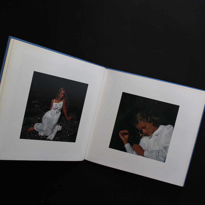 日本を代表する写真家のひとりである沢渡朔の写真集『海からきた少女 / Alice from the Sea』。日本大学芸術学部写真学科在学中より写真雑誌などで作品発表を始め、横尾忠則らも一時在籍していた日本デザインセンター勤務を経て、1966年よりフリーの写真家として活動。70年代には、ファッション・ストーリーのように無垢な女性の姿を幻想的なイメージで撮り下ろし、不思議の国のアリスを題材にした『少女アリス』や、イタリア人ファッションモデルを撮影した『ナディア』といった写真集が話題を呼びました。本書はその代表作『少女アリス』の続編的一冊で、当時10歳であった少女サマンサの4年後を、スコットランドの海辺やアイルランドで撮り下ろした作品集。前作と同じく谷川俊太郎の詩が添えられ、装丁・レイアウトは堀内誠一によってなされています。(帯カケ・ヤブレ大)