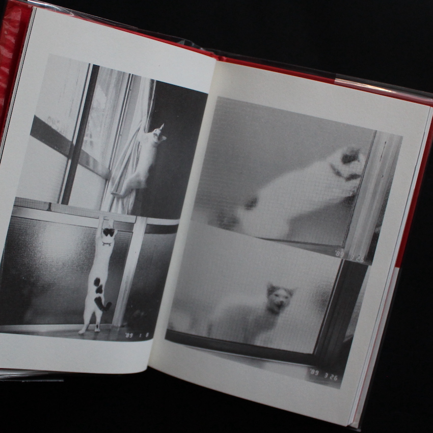 日本を代表する写真家・荒木経惟の写真集『愛しのチロ』。本書は、荒木とその妻・陽子の愛猫であったチロの写真集です。「愛人だし、人生だし」と荒木に言わしめるチロは、1988年3月に生後4ヶ月で荒木のもとにやってきますが、当初、荒木は猫嫌い。しかし、「Aはたちまちチロのトリコモナス」「ったくもー、可愛いったらありゃしない」とすっかり態度を改めています。バルコニーや近所の屋根の上、陽子の腕の中、眠る荒木の腹の上……自由きままに振る舞うチロの姿と、それを愛でるようにシャッターを切る荒木。随所にテキストも挿入されており、荒木のチロに対する想いがダイレクトに伝わってきます。その多くが1989年に撮影されたものですが、ちょうど陽子が子宮筋腫で入院し、不在となっていた時期もあり(そして1990年に亡くなる)、荒木のセンチメンタルな気分を投影する被写体として、チロの存在があったかのように思われます。陽子がこちらの刊行をとても楽しみにしていた為、棺の中の陽子の隣にも添えられた本書。初版・第1刷。写真家サイン及びメッセージ入り&サイン入りポストカード付属。