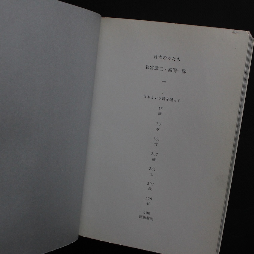 日本を代表する写真家・岩宮武二と同じく日本を代表するデザイナーでアートディレクターである高岡一弥の共著『Katachi 日本のかたち / Japanese Sacred Geometry(Third Printing)』。日本の機能美・伝統美を描写したこの『かたち / Katachi』シリーズは岩宮の代表作で、すでに1960年代初頭に作品集とまとめられていますが、こちらは普及版として高岡一弥のデザインでまとめられました。神社・寺院等の建築物、着物等の生活道具を通じて、歴史が奏でる美、機能が及ぼす美、形がもたらす(造形)美、色彩があらわす美等、日本の「モノ」が有する伝統的な美しさを描写し続けた名作。「紙」「木」「竹」「繊」「土」「鉄」「石」の章別にまとめられた400ページを超える大著。1999年刊行・初版第1刷。日本語版。