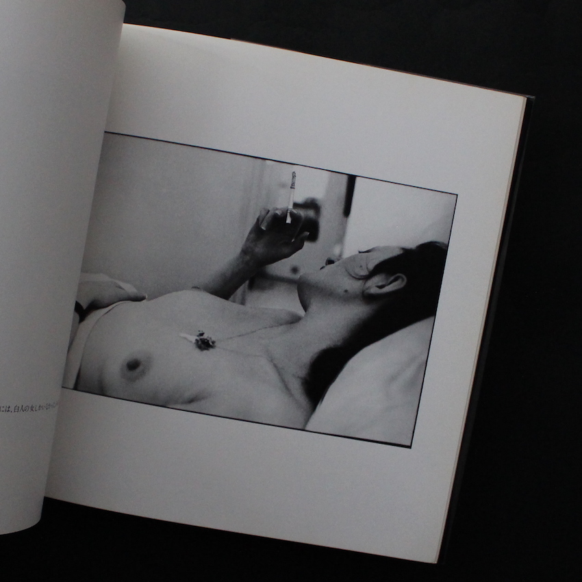 日本の写真家・新正卓(1936-)の写真集『To My Angels(Signed)』。60年代にグラフィック・デザイナーとして活動していた新正は、自身のトレーニングとしてイメージの撮影を個人的に行っていました。その中の1枚がデザイナーとして付き合いのあった写真編集者・山岸章二の目に留まり、1969年に『カメラ毎日』に掲載され、1970年には写真家へと転向します。その後、ファッションや広告の分野で活躍しながら、ヌード写真を中心とした写真集を手掛けています。本書は、それまでのファッション的なヌード撮影のスタイルから、よりドキュメンタリーへと近づいていった写真集で「心情としてロードムービー的な写真」と新正が話しているように、ブラジルの娼家(シャカラ)を訪ね歩き、ヌード姿の娼婦や男娼を撮り下ろしています。巻頭にはコピーライターの西村佳也がテキストを寄せています。謹呈署名入り。
