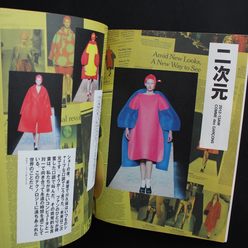 コム デ ギャルソンと川久保玲が生み出してきた服/デザイン/思想の全方位を、「1冊まるごとコム デ ギャルソン」として拡張・再編集した豪華保存版ムック。2012年に刊行され、1982年〜2012年のファッションストーリー、名フォトグラファーによる撮り下ろしビジュアル、コレクションの歴史・革新性・ブランド哲学を網羅しています。誌面構成では、「時代を揺るがしたコレクション10」「川久保玲独占インタビュー」「プロダクト・プロダクトデザインの道具的価値」「グラフィック&広告表現」「店舗空間デザイン」「メンズラインとブランドの多様性」など、多角的な切り口で魅力を探る章が立てられており、ブランドの生態系—服だけでなくグラフィック・ショップ・プロダクト・ファンコミュニティ—がひとつのまとまりとして伝わるようになっています。写真や装丁にも凝っており、蛇腹折・観音折といった開き方、ビジュアルページのボリューム感、赤いカバーなどビジュアル本としても持つ価値が高く、ファン/クリエイター双方にとって“見る喜び・探る楽しみ”が豊か。コム デ ギャルソンのアーカイブとしても、またブランドの創造性を考える資料としても重宝する一冊です。