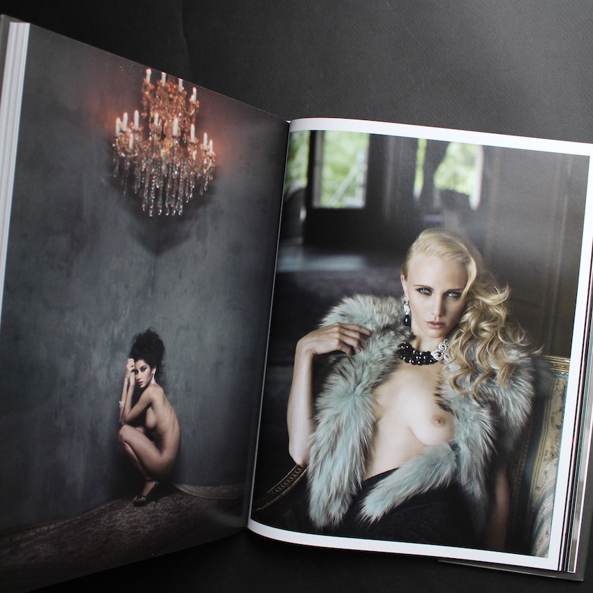 ベルギー出身の写真家であるMarc Lagrange による作品集『Diamonds & Pearls』です。ラグランジュは、ヌードやエロティックなワールドをクラシカルな照明と構図で昇華させる作風で注目を集めてきた作家であり、本書では「ダイヤモンドと真珠」というラグジュアリーで官能的なモチーフを通じて、時間を超えた美の演出を試みています。重厚なハードカバー208ページ構成で、英/独/仏/オランダ語併記の多言語出版。燻んだ光、豊かな陰影、そしてフィルム的質感が光り輝く被写体の肌と織りなす「静と動」の緊張が、ページをめくるごとに際立ちます。ラグランジュの撮影対象となる女性たちは、いわゆるファッション/ポートレートの枠に収まらず、彫刻的身体美と映像的演出を兼ね備え、観る者に「見られること」の意識と「存在すること」の実感を同時に喚起させます。クラシカルな照明を基調としながらも、そこには現代の感覚も息づいており、過剰とも言える美意識がそうならずにエモーションへと転写されているのが特徴です。写真表現を通じて「贅沢」「欲望」「記憶」「時間」を問いかけたこの作品集は、ラグジュアリー×アート×ヌードという交差点に位置する一冊として、コレクターズ・アイテムとしても価値が高く、彼の表現世界を深く知るための代表作と言えます。