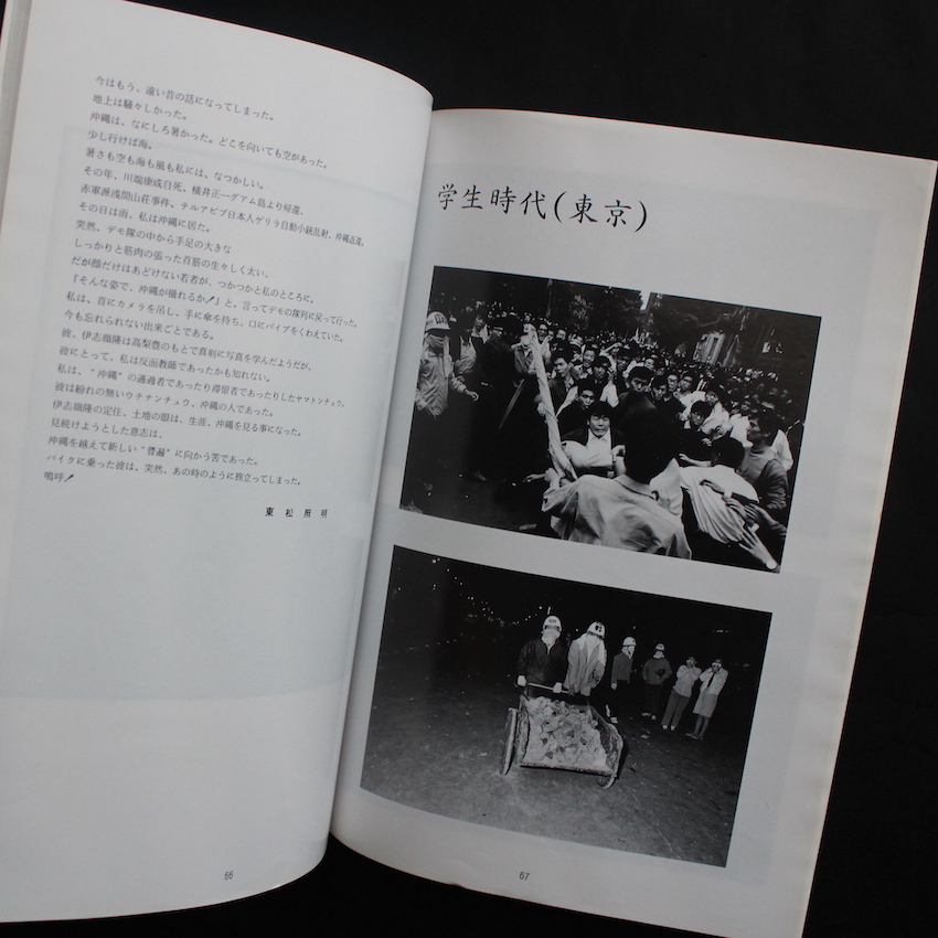 沖縄出身の日本の写真家・伊志嶺隆の写真集。1945年疎開先の台湾で生まれた伊志嶺隆は、バイク事故で47歳の若さでこの世を去った伝説の写真家のひとり。未来社から刊行されている「沖縄写真家シリーズ」にもノミネートされた当地を代表する写真家です。東京写真専門学校で学び、日本を代表する写真家高梨豊の写真事務所で助手を務め、70年以降は沖縄に戻りフリーとなります。「写真は大きく分類して表現者の写真と生活者の写真に分けられる。ついては君が島に帰るのであれば生活者の写真を撮ったらどうか」との高梨の助言を胸に、工事現場などで働きながら写真を続け、1988年にはついに東京銀座のニコンサロンで個展を開催するに至りました。本書は、没後石川真生や平敷兼七ら同志によって刊行された遺作集。代表作「光と影の島」を始め「ウミンチュ」「西表」等で「内なるまなざし」で構成された一冊。高梨豊、東松照明、飯沢耕太郎らのテキスト収録。(カバー濡れ跡及び、全体的にムレ・波打ちあり)