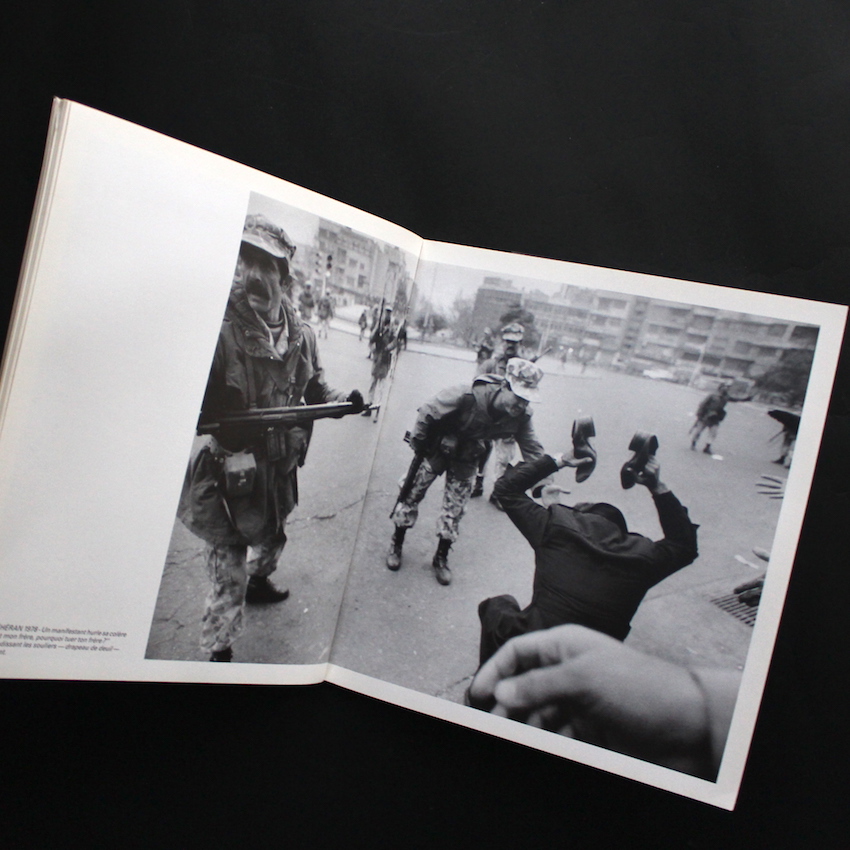 イラン出身の写真家・アルター・アバス(1944 - 2018)の作品集『Iran: la Revolution Confisquee』。通称・アバス。1960年代初頭にナイジェリアでフォト・ジャーナリストとしてのキャリアをスタートして、70年代初頭にはフランスの巨匠レイモンド・ドゥパルドンも所属したGamma、そしてその後は写真通信社・シパプレスと、報道写真家としての地位を築いていき、1981年にはマグナム・フォトのメンバーとなったアバス。これまでに、アフリカ・東南アジア・中南米など計30カ国近くの主に途上国でルポを続け、90年頃よりはイスラム文化の復興やキリスト教徒への取材など、宗教をテーマにしたドキュメントに取り組んでいます。本書は、アバスの代表作で「プロテスト写真集」の名作の一つ。1980年前後のイラン革命の様子を収めた図版が収録されており、女性が、子どもが、老人が、国中の誰もが銃を持つ、危険な環境下で、政府と戦い民衆自らの手で政権を勝ち取った、「イスラム国家」成立までの歴史的戦いが描写されています。