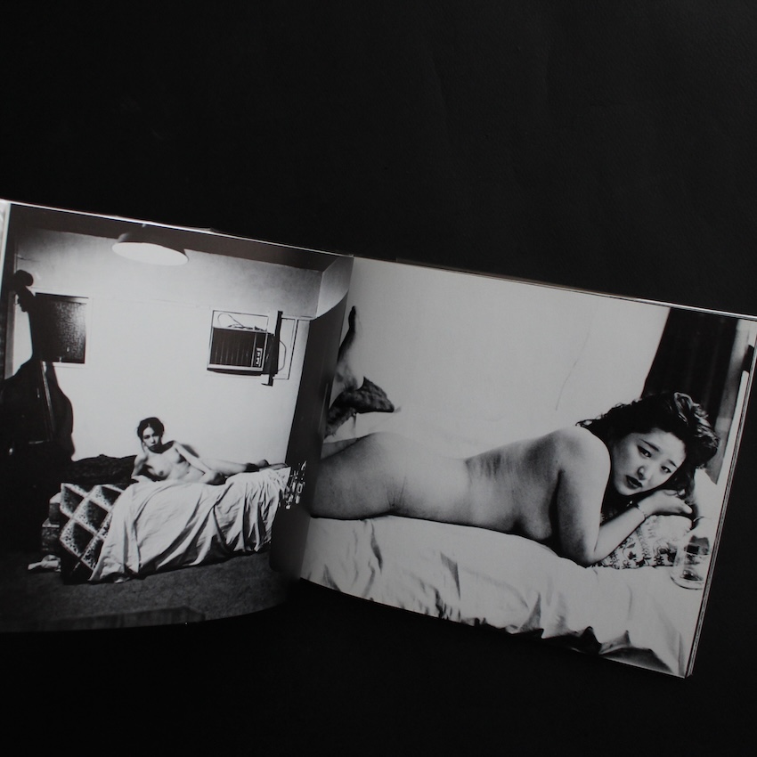 日本を代表する写真家・荒木経惟の写真集『東京ブルース 1977』。本書は、2013年にタカ・イシイギャラリー フォトグラフィー/フィルムにて開催された個展に合わせて刊行された写真集です。最初のページには、壁に貼られた「東京ブルース」と記された荒木の写真展のチラシの複写が登場しますが、本書に掲載された写真は、1977年に銀座と新宿のニコンサロンで開催された写真展にて発表されたもの。その後倉庫で手付かずのまま眠っていたようですが、発掘されたヴィンテージ・プリントが40年の月日を経て再度展示が行われました。「当時荒木が出会った九州出身の女性から始まる‘つくりごと’のドキュメンタリー」(ギャラリーより)で、東京へと出てきた女性の生い立ちや生活に“ブルース”を感じたという荒木は、様々な事情を抱えて東京に出てきたと思しき女性たちのドキュメントという体裁(虚構)で写し出しています(これらは1978年発行の写真集『劇写「女優たち」』に別途まとめられています)。