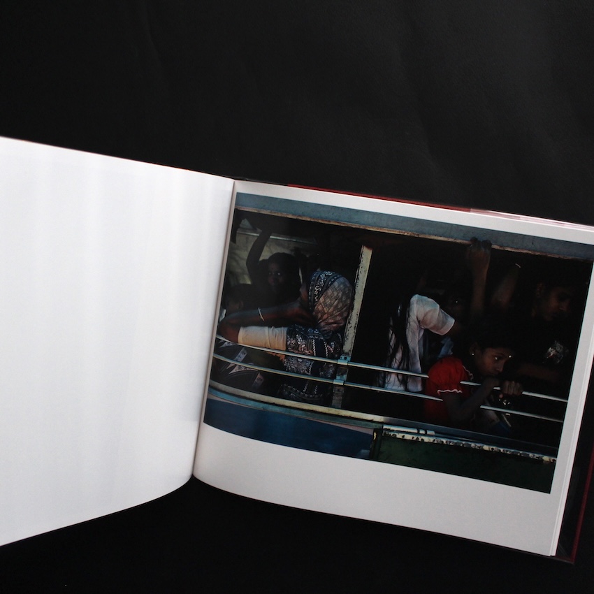 ベルギーの写真家ハリー・グリエール(1941-)の作品集『India』。マグナム・フォト所属のカラー写真の先駆者として知られ、光と色彩の対話を探求しながら、旅先で見つけた日常の風景を詩情豊かに写しとってきたグリエール。本作では、インド各地の街路や市場、宗教儀礼、交通の混沌などを独自の距離感で捉え、強烈な色彩と複雑に交錯する光が、土地のリズムや人々の息づかいを視覚的に響かせています。視線が交わることなくカメラだけがそっと滞在しているような構図が多く、観察者としての立場を保ちながら、雑踏のエネルギーをそのまま写真に落とし込んでいる点が特徴です。赤やオレンジ、青など鮮やかな色面が画面を支配する一方、影の濃度が強いコントラストを生み、祈りや沈黙といった内面の時間も感じさせます。異文化への憧れや異邦人としての戸惑いを抱きながらも、彼の写真はステレオタイプをなぞらず、眼前にある光景に丁寧に寄り添うように撮影されており、土地の多層的な魅力を静かに伝える一冊です。