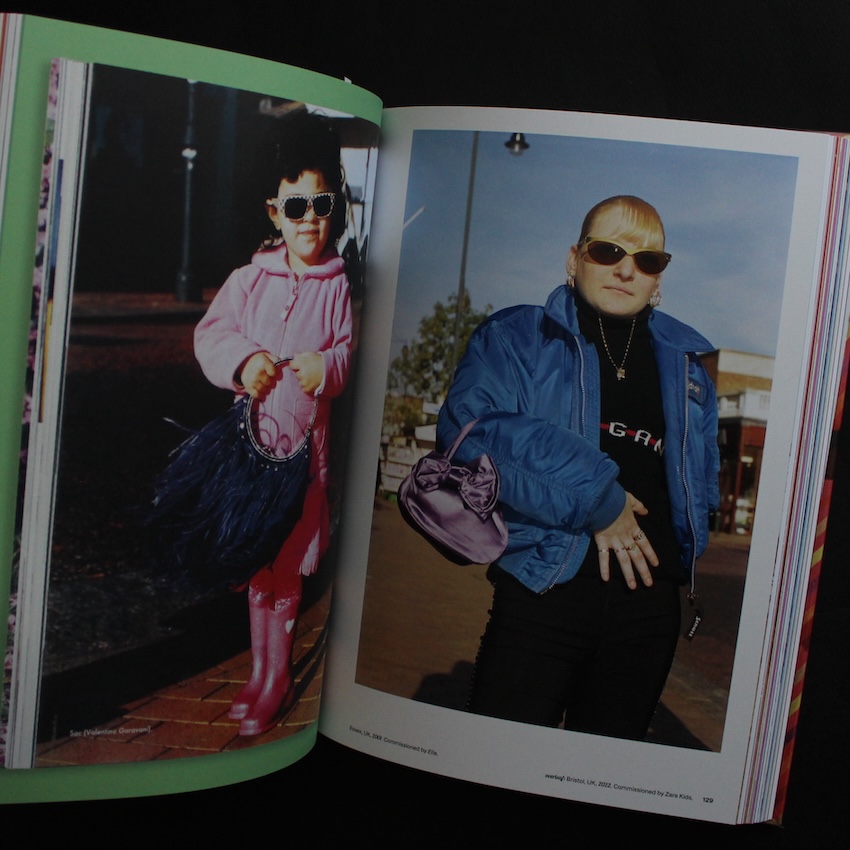 イギリスの写真家マーティン・パー(1952-2025)の作品集『Fashion Faux Parr(Signed)』。1970年代以降、イギリス社会を起点に、消費文化や階級意識、余暇の過ごし方といった日常の風景を、鮮烈な色彩と乾いたユーモアで捉えてきたパーは、ドキュメンタリー写真に社会批評の視点を持ち込んだ作家として確固たる地位を築いてきました。本作は、そうした彼の関心がファッションという領域に向けられた写真実践を編集・集成した一冊です。ランウェイや広告が示す理想像ではなく、街角やイベント会場、その周縁に現れる人々の装いに視線を向けることで、流行をなぞる欲望と個人的な嗜好がずれたまま共存する現実が浮かび上がります。写真は対象を嘲笑することなく、装うという行為がいかに社会的な規範や価値観と結びついているかを淡々と示し、見る側自身の判断や視線のあり方を問い返します。ドキュメンタリーと社会批評を横断してきたパーの方法が、ファッション写真の文脈を外側から読み替える試みとして結実した一冊です。写真家サイン入り。