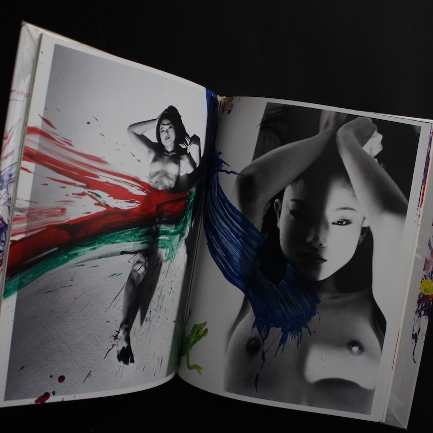 日本の写真家・荒木経惟の作品集『KaoRi Love』。2000年代、荒木がモデルKaoRiを長期にわたり撮影したシリーズの一冊で、2007年に限定的なかたちで刊行された希少本です。本作の特徴は、ポートレイトやヌードのイメージに、荒木自身がペインティングや加筆を施すことで、写真を「完成された記録」から引き離している点にあります。輪郭をなぞる線や身体に重ねられた色彩は、被写体を飾るためのものではなく、撮る側の欲望や衝動がそのまま露出した痕跡として現れます。KaoRiの身体は理想化されることなく、写真と介入がせめぎ合う場として置かれ、荒木が一貫して向き合ってきたエロスと生の不安定さが濃く刻まれます。同じ形式で繰り返すことが難しい一回性と、写真に触れずにはいられない衝動が交差する本書は、2000年代荒木作品の特異な地点を示す一冊です。400部限定。