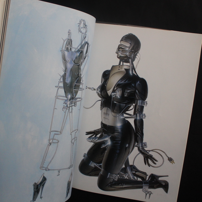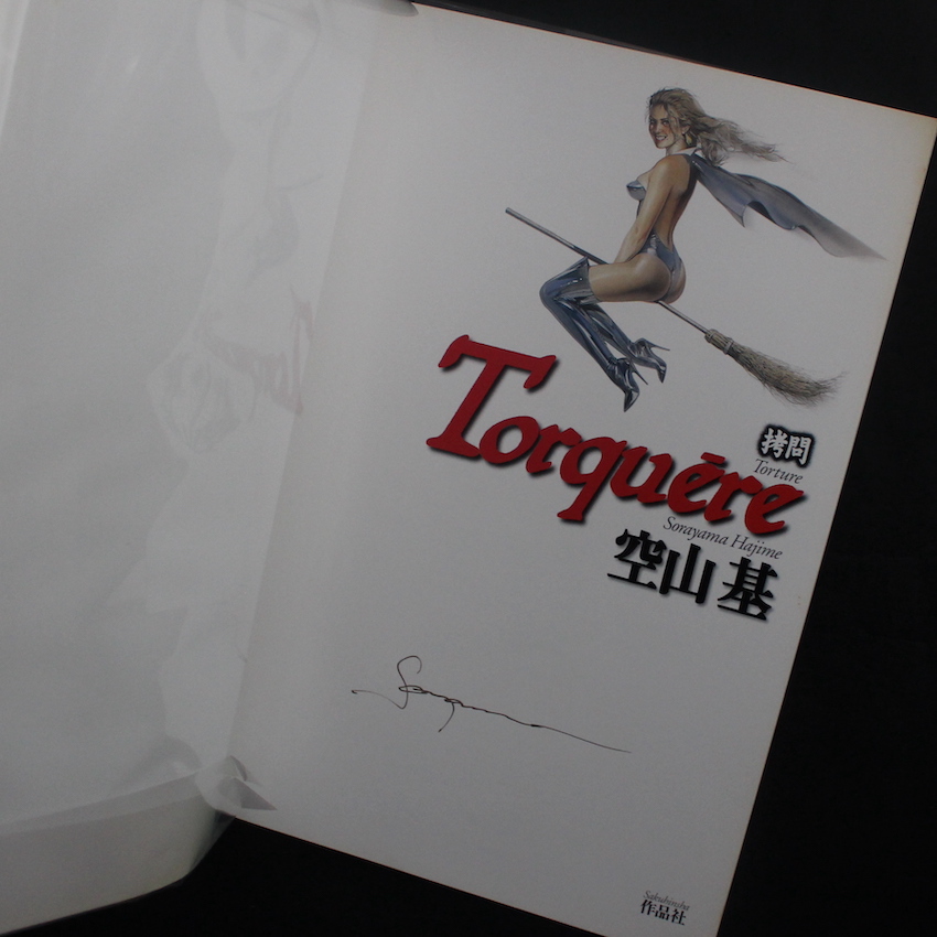 日本のイラストレーター・空山基の作品集『拷問 / Torture(Softcover, Signed)』。写実的なエアブラシ技法を駆使し、金属的な質感と官能性、時に暴力性をも融合させた独自のスタイルを確立、代表作「セクシーロボット」シリーズは国内外で知られる名作。その影響力は、映画『アイアンマン』のデザインや、ソニーの犬型ロボット「AIBO」の初代デザインにも及んでいます。本書は、空山基の代表的な作品集の一つであり、フェティッシュ・アートの集大成とも言える一冊。タイトルの「Torquere」はラテン語で「ねじる」「歪める」を意味し、作品全体に漂う官能的な緊張感や、肉体と機械の融合といったテーマを象徴しています。また、金属的な質感を持つ女性型ロボットや、サイバーパンク的な要素を取り入れたイラストレーションが多数収録されており、空山の緻密な描写と独特の世界観が堪能できる作品集です。ソフトカバー版。