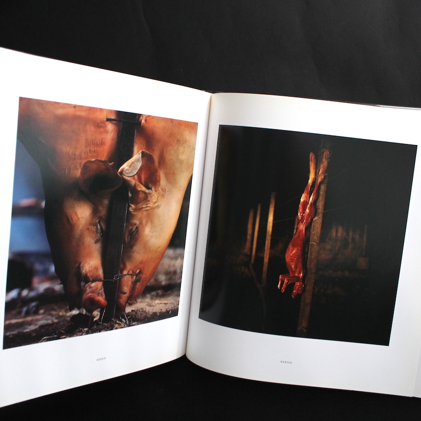 ニューヨーク生まれアルゼンチン育ちの女性写真家で、マグナム・フォト所属のアレッサンドラ・サンギネッティのファースト写真集『On the Sixth Day(Condition:B)』。ブエノスアイレス郊外の農家に暮らす動物と人を写したドキュメンタリー。屠殺されるために育てられる動物達。生きる術として屠殺しながらも、その動物達を大切に育てリスペクトする農家の人々。動物と人間の相反する複雑な心情を、女性写真家らしい繊細かつ優しい視点で捉えたドキュメンタリー写真の名作。動物達の心の声が聞こえてきそうな写真の数々に心が奪われます。2005年刊行・初版本。1500部限定。Parr & Badger / Vol.Ⅲ掲載本。(後ろ見返し角イタミあり)