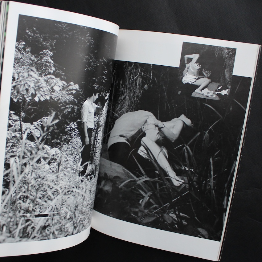 本書は、1980年前後に蒼竜社より刊行されていた雑誌『クールガイ / Cool Guy』の増刊として刊行された『ピーピングラブ / Peeping Love クールガイ増刊』。戦後日本を代表する写真家のひとりで「赤外写真」で名を馳せた吉行耕平。代表作『ドキュメント 公園 / Document Park』は、2007年に海外で改訂版が刊行され、2019年にも版を新たに復刻版が発表され、高い人気を誇っています。また、密写師と呼ばれ、雑誌『写真時代』でも末井昭に取り上げられていた篝一光の『ドキュメント 通勤電車 / Document Commuter Train』なども人気がありますが、時代的にもこのような類の写真が多く扱われていたようです。本書も、その類の一冊で、モノクロ・カラーのイメージが連なります。(地にゾッキ線あり)