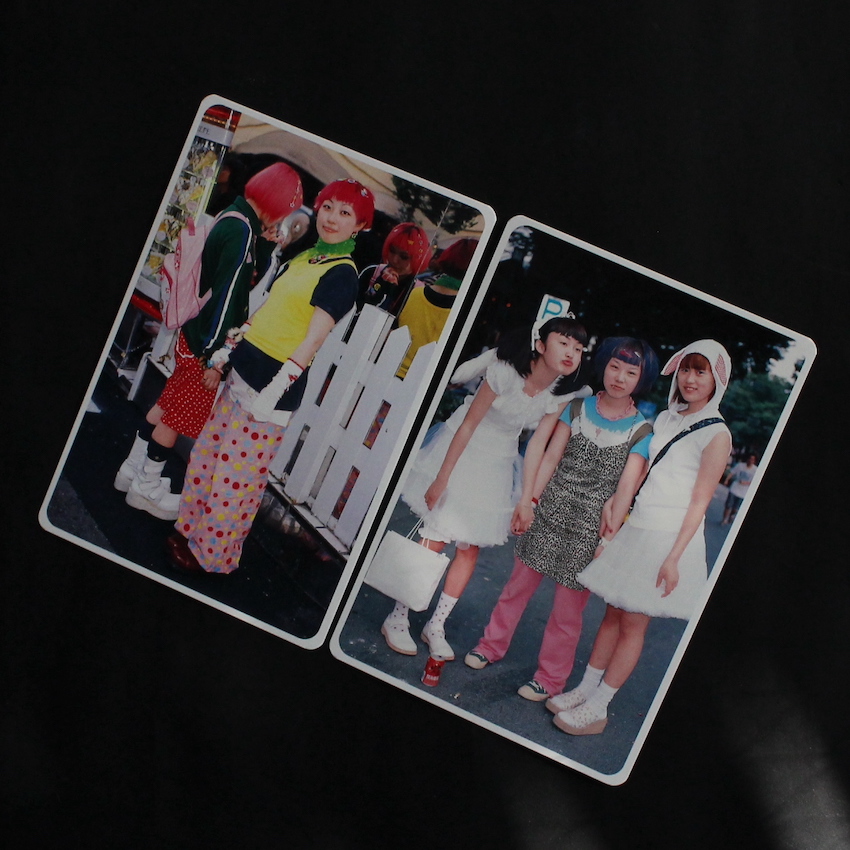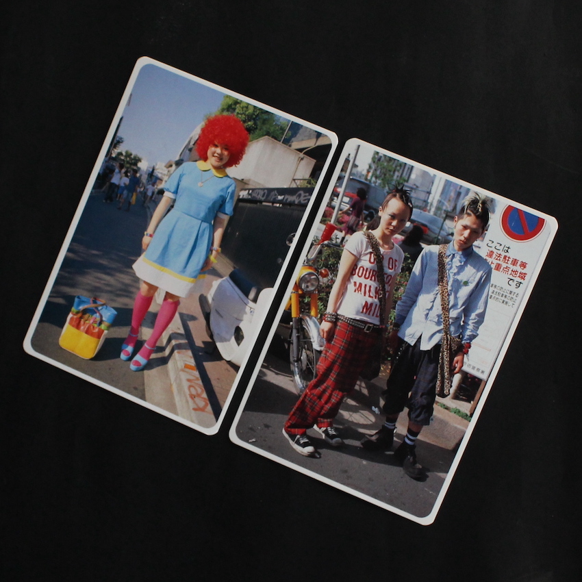 本書は、2005年にPhaidon社から刊行された、ストリートファッション誌『FRUiTS』収録の図版からティーンエイジャーたちのイメージにフォーカスしてまとめられた『Fresh Fruits 45 Postcards』。1997年に創刊された『FRUiTS』は、ロンドンやパリなどの海外のストリートファッションを紹介し、ファッションスナップの先駆けとなった『STREET』の創刊者である青木正一が、原宿の路上に集まる個性的なファッションの若者たちに自ら声をかけて撮影することから始まった伝説的なストリートファッションスナップ雑誌です。また、登場する被写体である若者たちの間で一大ムーブメントを巻き起こした雑誌でもあり、スナップされるために原宿に集まった若者たちによる「青木待ち」という現象も生まれたほどでした。『Fresh Fruits』は、10代のティーンエイジャーにフォーカスして、2005年に写真集としてまとめられましたが、こちらはその中から45図版を選び、B6サイズのカードタイプにまとめられた作品集となっています。(イエローカラー・ケース)