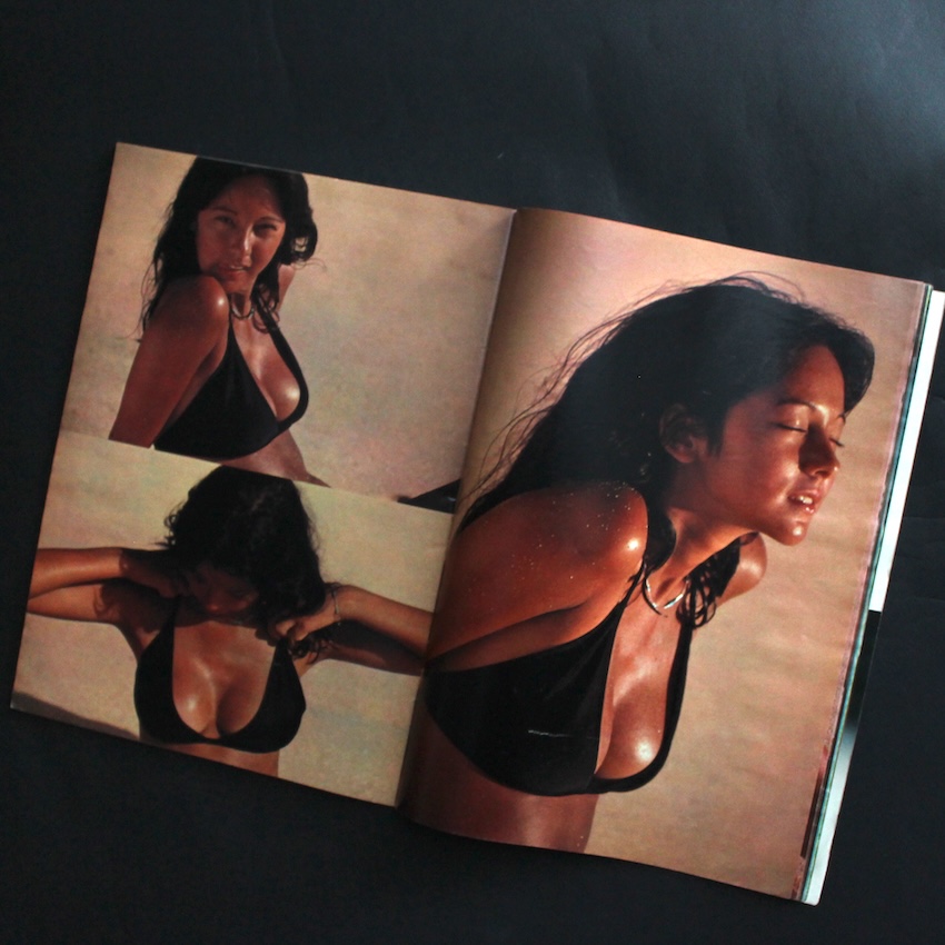 小学館『別冊BIG GORO』として1970年代に展開された「激写」シリーズの1976年8月号。「激写」は、当時の若者文化やスターを、即時性と身体感覚を重視した写真で捉えたフォトマガジン群です。スタジオ的な作り込みや完成度よりも、現場でのスピード、被写体との距離の近さ、状況そのものを写し取る姿勢が特徴で、ロックミュージシャン、俳優、アイドルといった存在を、消費されるイメージとしてではなく、同時代の熱量を帯びた「出来事」として定着させてきました。誌面構成もB4判の大きなサイズやピンナップを含み、雑誌と写真集の中間的な性格を持っています。「激写」は単なるシリーズ名ではなく、70年代日本におけるメディアとカルチャーの接点を象徴するフォーマットであり、本号では、アグネス・ラムの特集のほか、南沙織や東てる美らのイメージが収録されています。