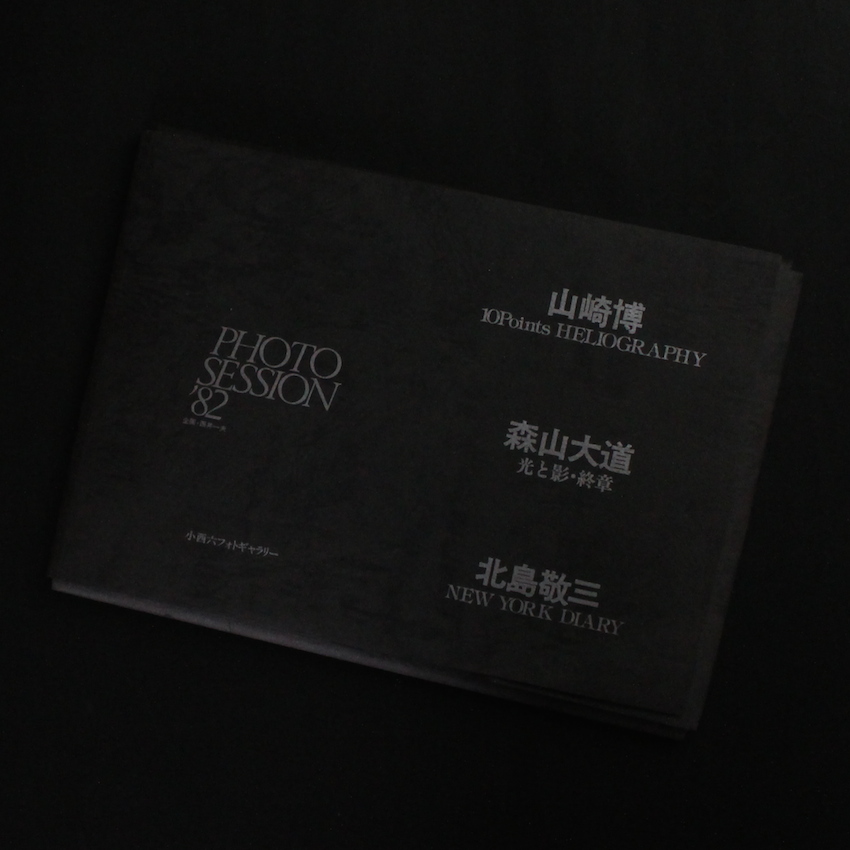 日本を代表する写真家山崎博 ・森山大道 ・北島敬三による作品集「Photo Session '82」。「天井桟敷」のメンバーとして活躍し、後に「自然」「太陽」「時間」をテーマにしたランドスケープ / コンセプチュアル・フォトで名を馳せた山崎博。そして言わずと知れた日本を代表する写真家で、現在も国内外で作品集を発表し続ける「Daido」こと森山大道。さらには森山大道のワークショップで写真を学び、80年代前後には東京・沖縄・ニューヨークを舞台にハイコントラストなスナップを創作し、コアな写真ファンやサブカルチャー族に絶大なる支持を受ける同じく日本を代表する写真家北島敬三。本書は、カメラ毎日の西井一夫の企画により、東京・銀座の小西六フォトギャラリーで行われたエキシビジョンを機に刊行された作品集。山崎博の「Heliography」、森山大道の「光と影・終章」、北島敬三の「New York Diary」の作品各10・計30の作品がポストカード大に印刷されたユニークな一冊。