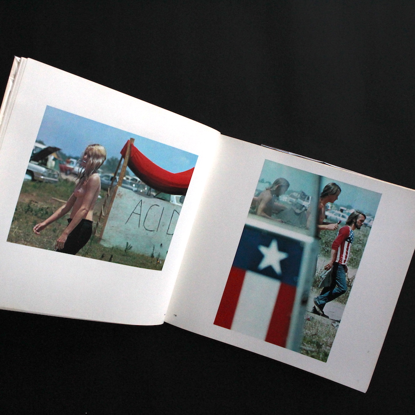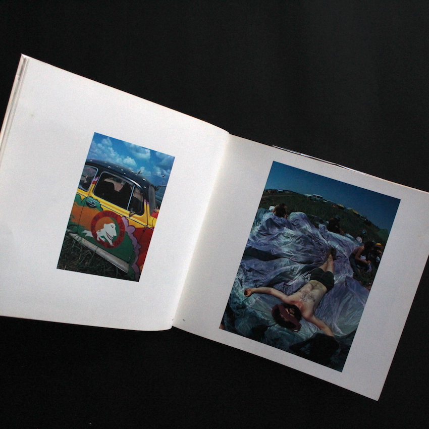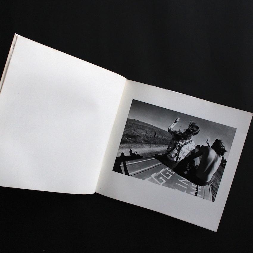 戦後日本を代表する写真家・奈良原一高の作品集『生きる歓び / Celebration of Life』。本書は、カメラ毎日の別冊として、山岸章二が編集を担った奈良原の初期作品集で、初出はカメラ毎日の1971年10月号。35ページに渡る写真図版、さらには自身と大辻清司らによる20ページ近いテキストで、計50ページ強に渡って特集が組まれました。自身の「写真」を見直すために、1970年にアメリカへと移住して4年近く過ごし、その間ダイアン・アーバスのワークショップへの参加や、後に『消滅した時間』に収録されることになるアメリカを横断しての撮影など、様々なことに取り組んだ一高ですが、1971年6月には、妻とともに「ロックフェスティバル」に乗り込み、その様子を収めた図版が本書に収録されています。自然と自由を愛し、ドラッグまみれのヒッピーな若者たちが、裸で踊り裸で楽しみ裸で生きる姿をドキュメントしています。巻末には、カメラ毎日に掲載された奈良原による手記も収録されています(英日併記)。