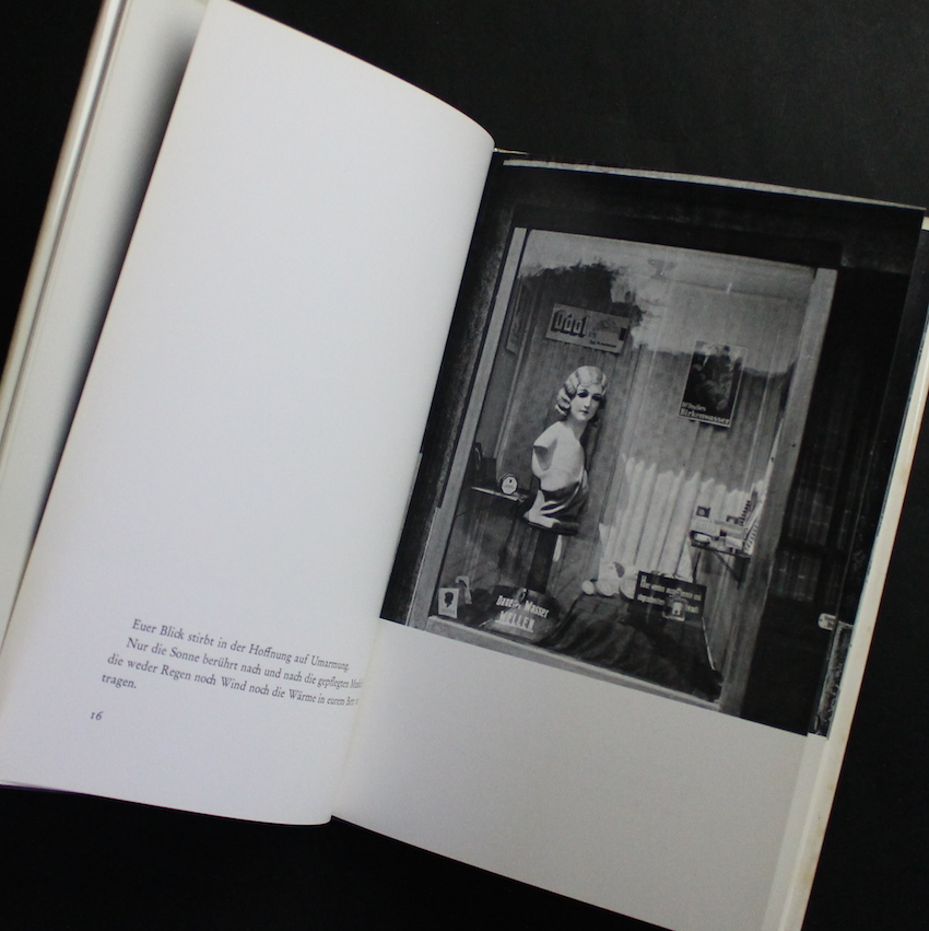 チェコのアーティストであるインジフ・シュティルスキーと詩人インジヒ・ハイスラーによる写真集。タイトルの英訳『On the Needles of These Days』。チェコ・のシュルレアリスムを代表するアーティストで、画家、写真家、詩人、イラストレーター、デザイナー等多彩なフィールドで活躍したシュティルスキー。公私にわたるパートナーであったトワイヤンと共に20年代半ばからパリに渡り、アンドレ・ブルトンやマン・レイを始めとしたパリのシュルレアリスム・グループと親交を深め、30年代はプラハに戻り雑誌『la Revue érotique / 性的夢想』などの創刊や数々のアヴァンギャルドな創作活動を通じて、チェコの前衛芸術の推進に多大なる貢献を果たしたアーティストです。本書はシュティルスキーが1941年に刊行した数少ない写真集のリプリントで、写真界でも絶大なる評価を受けている作品集。建物のオブジェやファサード及びサイン、ショーウィンドー、グラフィティなど、街の日常の断片を通じて表現した戦争や抵抗へのメディテーション。The Book of 101 Books、Parr & Badger vol.Ⅰ掲載。