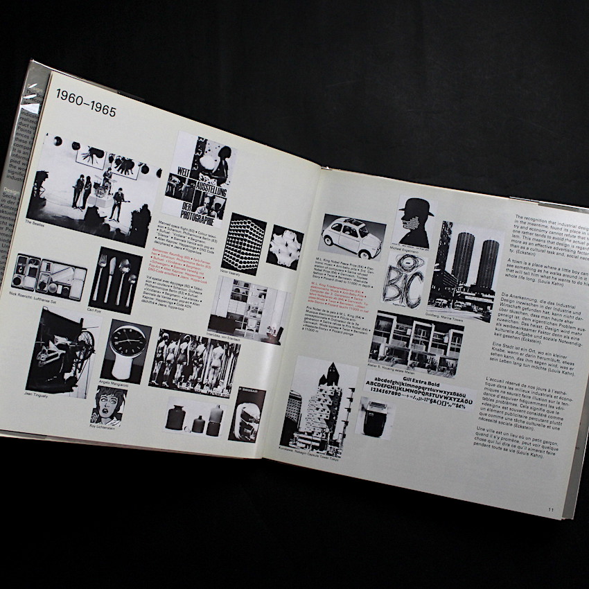 グラフィック・デザイナーとして企業のデザイン・コンセプトに関わってきたWolfgang Schmittelによるデザイン書『design concept realisation』。チューリッヒのABC Editionsは、同じ判型で統一されたWolfgang Schmittelによるデザイン書を多数出版していますが、いずれも良書です。本書では、国際的な6つの企業の優れたデザイン・コンセプトを紹介。ドイツらしい機能主義で知られる家電メーカー「ブラウン」やイームズなどによるモダンデザイン家具を量産した「ハーマンミラー」、エットーレ・ソットサスによるタイプライターで知られるイタリアの「オリベッティ」、その他「ソニー」、「シトロエン」、「スイスエア」といずれもデザイン・コンシャスな企業が並びます。豊富な資料で、企業ロゴから商品(プロダクト)の設計、パッケージやポスターなどのヴィジュアル・コミュニケーションに至るまで、そのコンセプトがいかに実現していったかを詳細に解説しています。