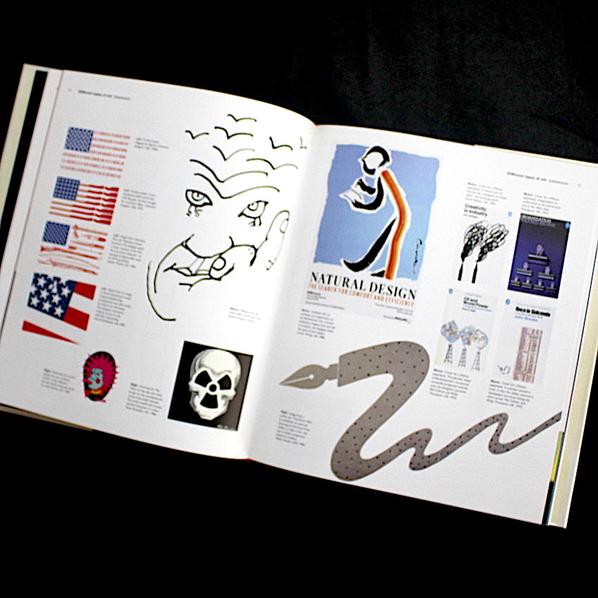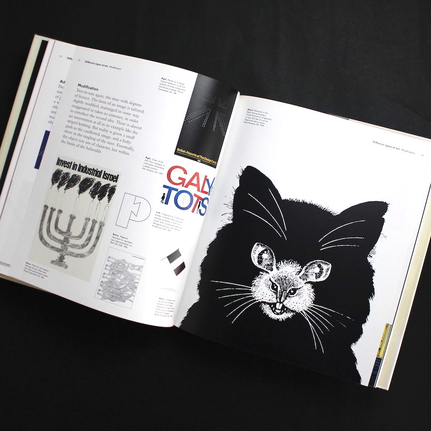 グラフィック・デザインにおける遊び心“witty thinking”をテーマに編まれたデザイン書『A Smile in the Mind』。視覚情報としてより魅力的で効果的な手法であるユーモアやウイットのあり方を、主に60年代から90年代までのグラフィックを、ダイレクトメールからインフォメーショングラフィックスといった用途別(3章:Items that use wit)、アートから法律といった分野別(4章:Business that use wit)にまとめて紹介しています。5章では、どのようにアイデアがひらめくのか(How I got the Idea)を20名の錚々たる顔ぶれのグラフィック・デザイナーにインタビュー。アメリカの大家ソウル・バスやポール・ランド、「プッシュピン・スタジオ」のミルトン・グレイザーやシーモア・クワスト、イギリスのデザイナー集団「ペンタグラム」の創設者の一人であるアラン・フレッチャー、日本からは福田繁雄が答えています。