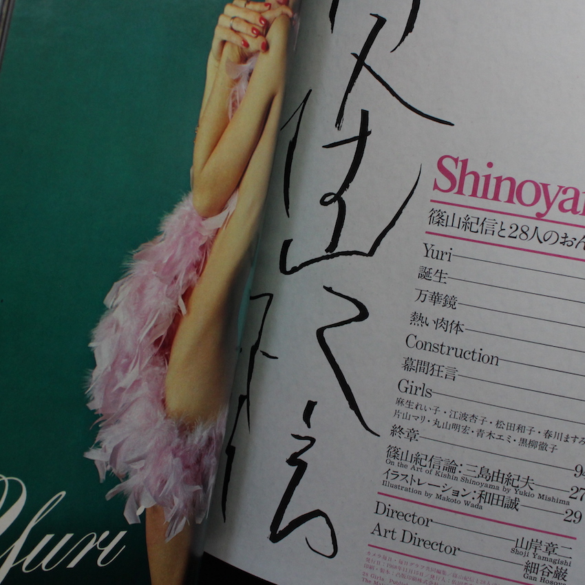 日本の写真家・篠山紀信の写真集『篠山紀信と28人のおんなたち / 28 Girls by Kishin Shinoyama(Signed)』。多くの写真家が、悩めどなかなかなし得ることが難しい「コマーシャル」と「アート」創作活動の両立。おそらくは戦後日本写真界の中で、もっともその類で成功した写真家の1人と言えるのが篠山紀信ではないでしょうか。ヘアヌードの先駆けで、空前絶後のブームを巻き起こした宮沢りえの『Santa Fe』、栗山千明らによるチャイドル写真やグラビアが一般的には有名ですが、初期の70年代には『オレレ・オララ』(1971)『家』(1975)『晴れた日』(1975)等、アート写真界でも名作と評される作品も多数残しています。こちらは1968年・若干27歳時に刊行された初期代表作で、金子隆一による『日本写真集史 1956-1986』にも収録された一冊。江波杏子、丸山(美輪)明宏、そして若かりし黒柳徹子のセミヌードなどが収録された一冊。写真家サイン入り。