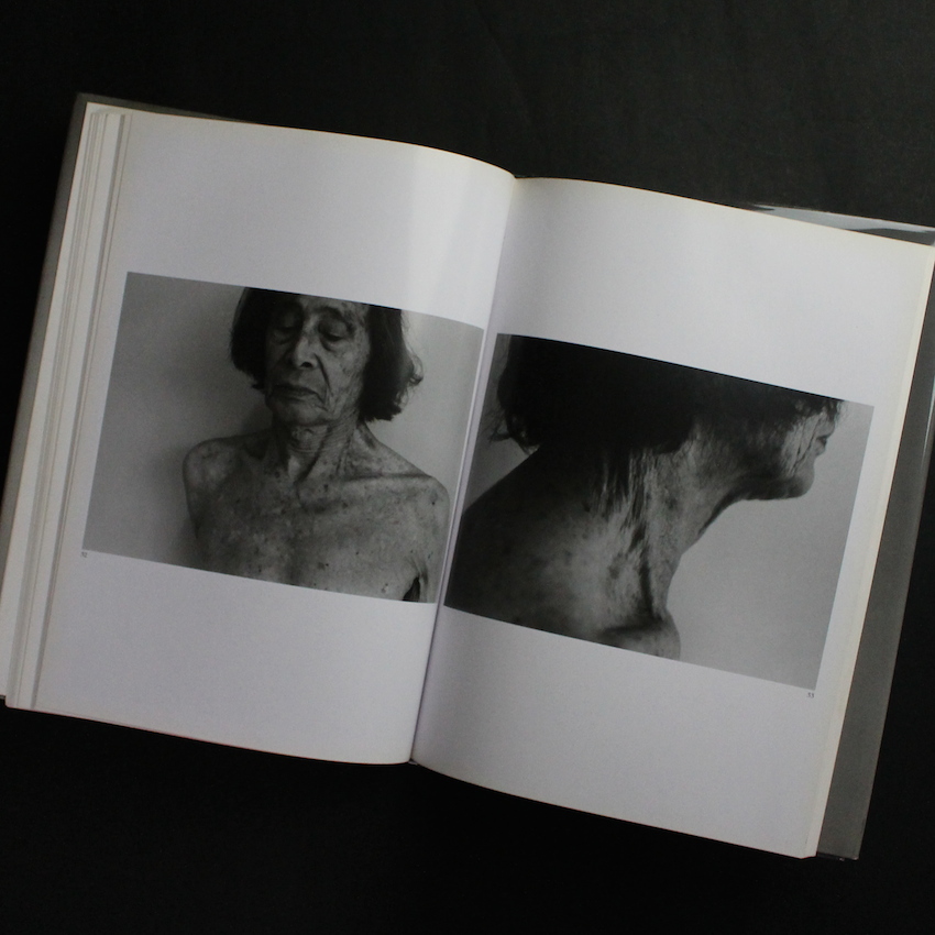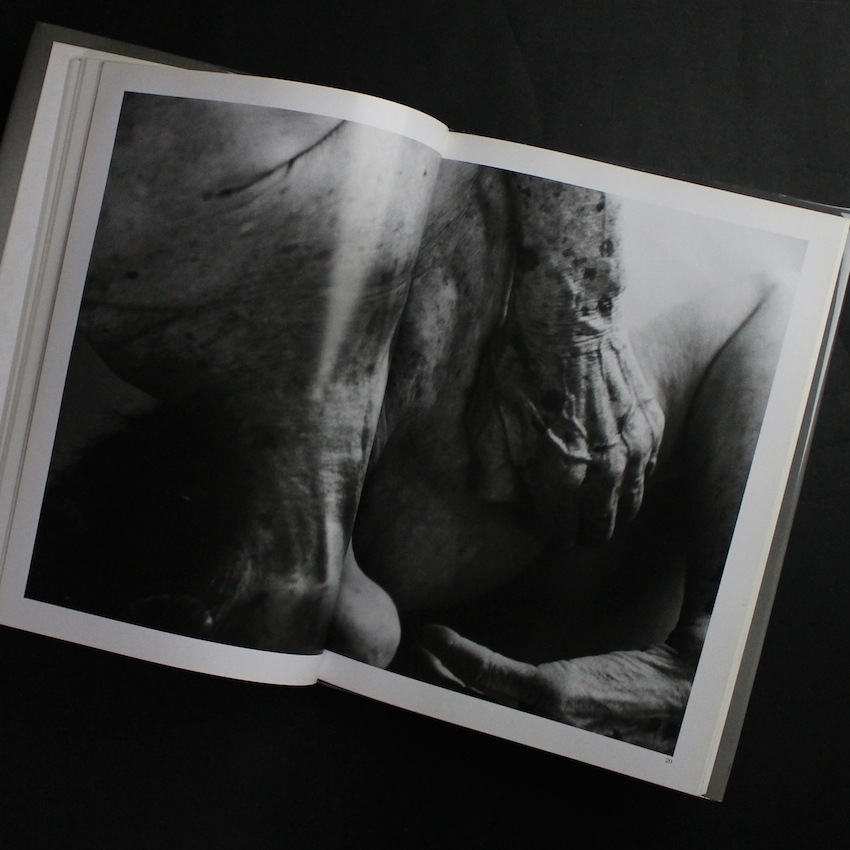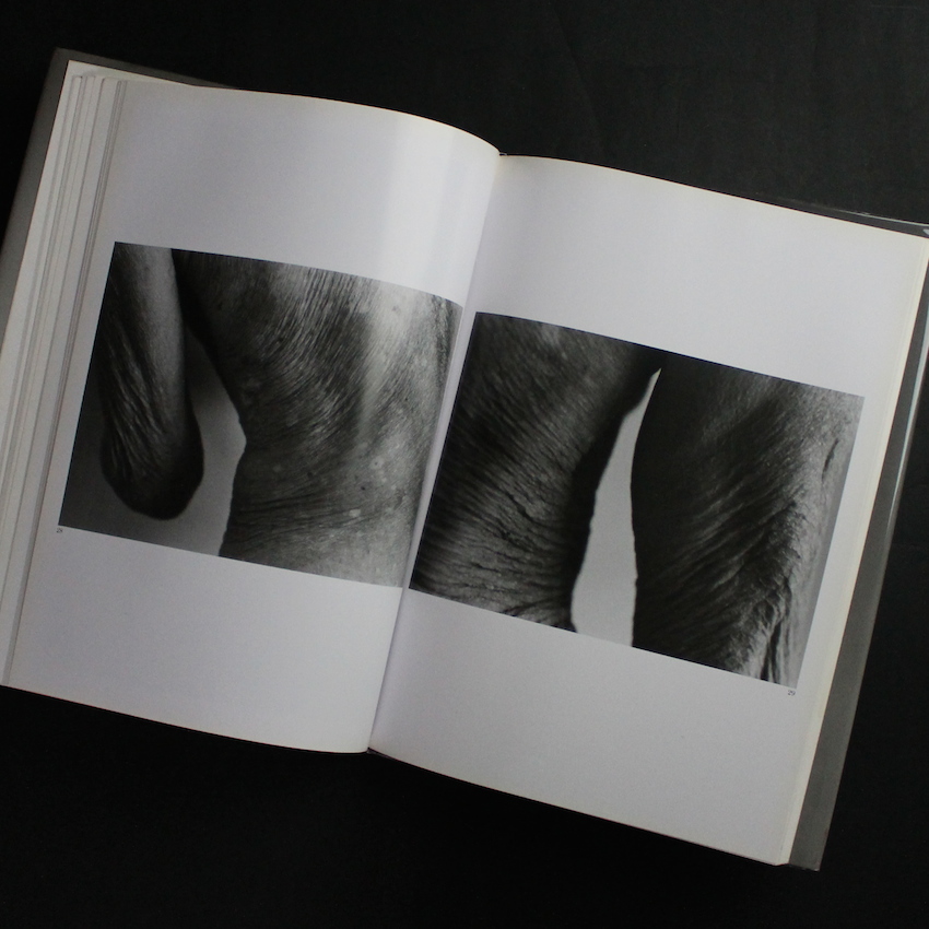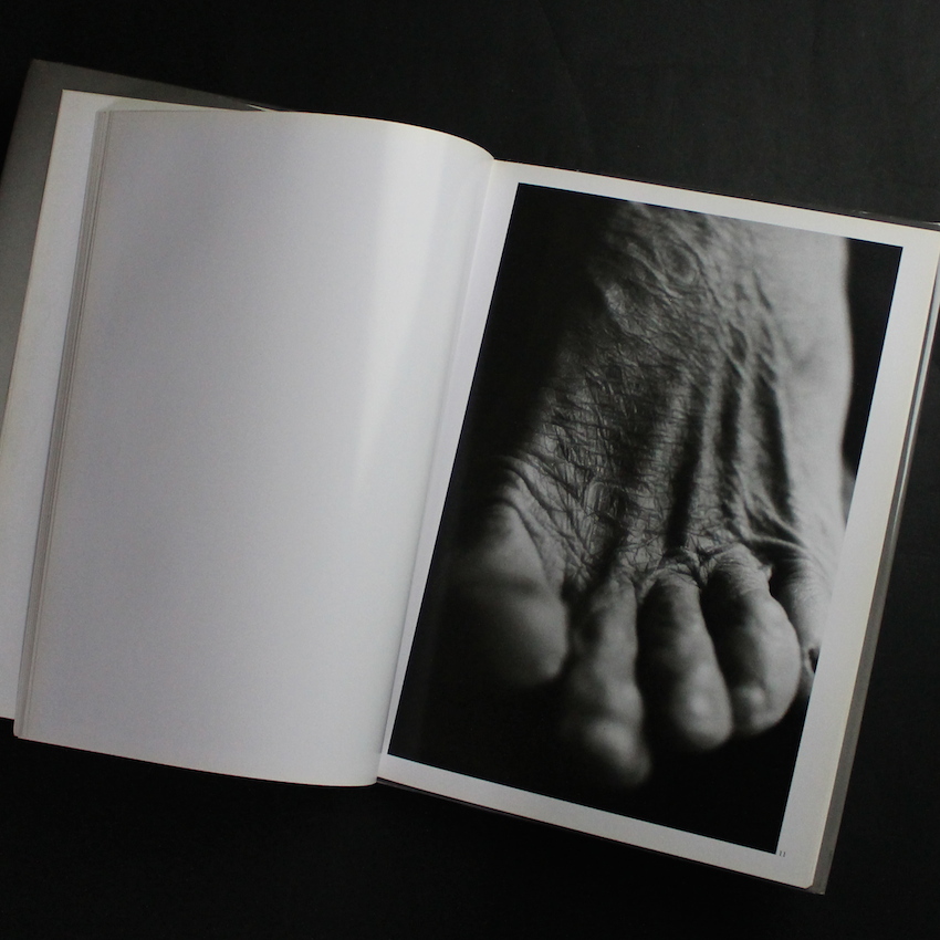 現代日本を代表する写真家石内都の写真集『1906 to the skin』。町の空気や気配、建物の佇まい、そして人間の匂い。。。三部作『絶唱・横須賀ストーリー』『アパート』『連夜の街』に代表される石内の初期作品群は、「町」や「建物」のランドスケープを通して、目に見えない「人々の営み」を描写し続けるスタイルが中心でした。そんな石内が、対象を「ヒト」「モノ」に移し、被写体との距離感をより縮めて、ヒト・モノの背景や不可視なストーリーを紡ぐきっけとなったのが「1・9・4・7」でした。以降、「Mother's」「ひろしま」「Frida by Ishiuchi」等接写シリーズの傑作を数々と発表してきましたが、本書は1・9・4・7に続き1994年に刊行された作品集で題材は「舞踏家・大野一雄」。1906年生まれであることからタイトルは「1906 to the skin」。80年以上もの歳月の中で、完全な肌を纏い、時に衣を優雅に纏った芸術家の人生の痕跡が刻まれています。