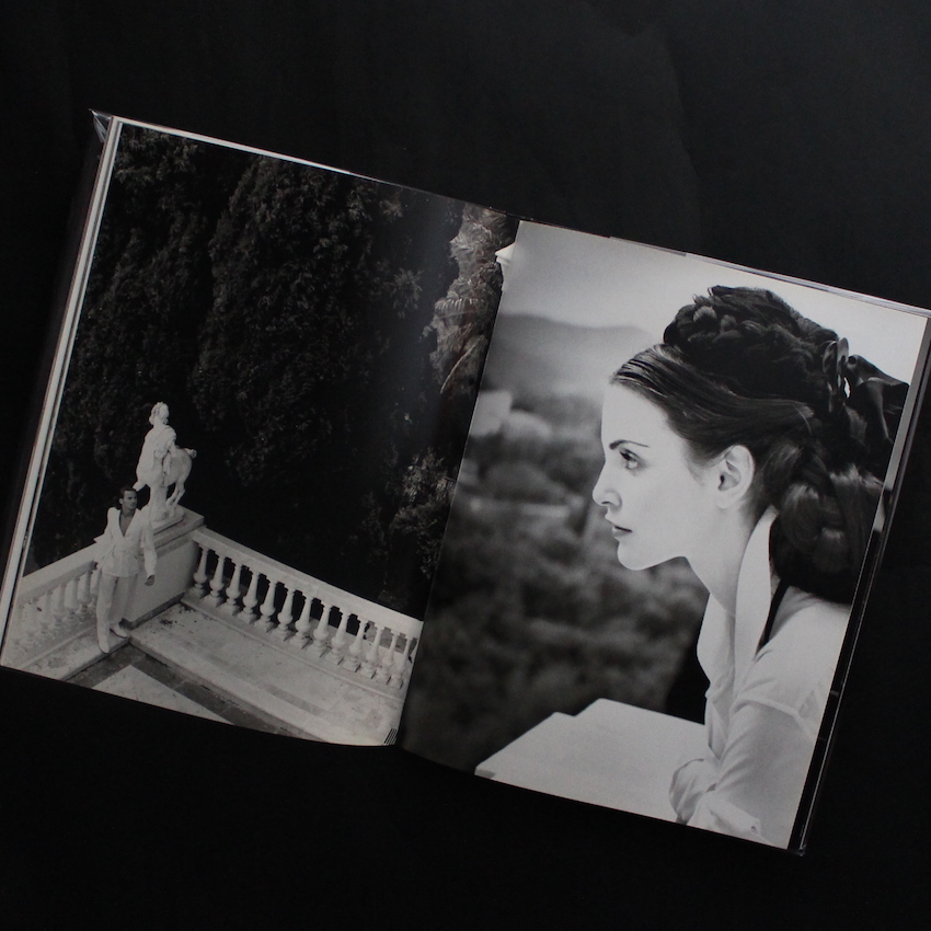 ファッションデザイナーとして著名なカール・ラガーフェルドの写真集『Axiaaeion / Achelleio / L'achilleion』。ドイツに生まれ、ピエール・バルマンのオートクチュール・メゾンに勤めた後「クロエ」のデザイナーに就任、2年後には「フェンディ」のデザイナーに抜擢され、80年代以降は「シャネル」のチーフ・デザイナーを担います。同時に自身のブランド「カール・ラガーフェルド」を立ち上げ、以降の活躍は周知の通り。本書は、ギリシャ・ケルキラ島にあるアヒリオン宮殿を舞台に撮影された男女2名のモデルのポートレート及びファッション写真を中心に構成された一冊。1891年オーストリア=ハンガリー帝国皇妃であったエリザベートによって建立された避寒のための離宮であったアヒリオン。ルネッサンス様式の豪華な佇まいと、時代を超えて受け継がれてきた独特の空気感。島と建築が織りなす素晴らしい雰囲気を見事に写真に収めたラガーフェルドらしいセレブな一冊です。