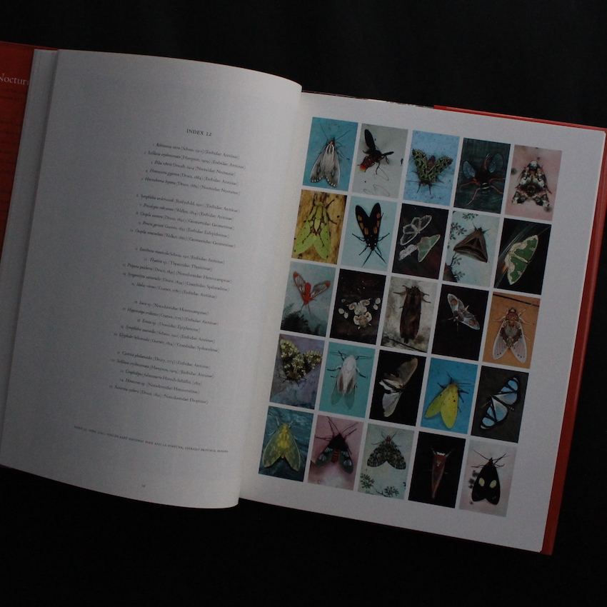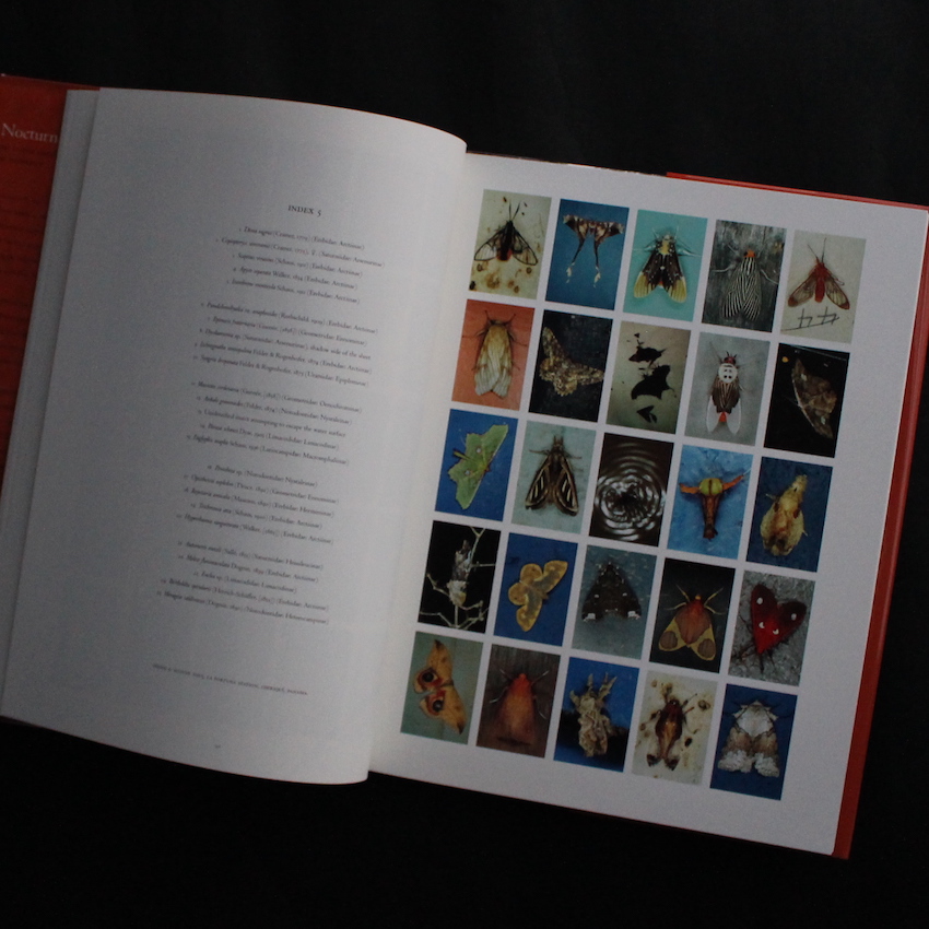 アメリカの写真家エメット・ゴーウィン(1941-)による写真集『Mariposas Nocturnas』。70年代に妻エディスや家族のポートレートで注目を集めたゴーウィンですが、その後、人工的また経年とともに変化していくアメリカ西部の風景などを撮影します。プリンストン大学で教鞭を執り、本書もまた同大学から発行されました。タイトルは『夜行性の蛾』となり、15年間、ボリビア、ブラジル、エクアドル、フランス領ギアナ、パナマといった中南米をめぐり撮り続けてきた蛾の写真を標本的にまとめたものです。その数は1000種に及びますが、その羽根の模様やカラーなど、個体ごとに異なる自然が生み出した造形美には感嘆させられます。中にはこれまでに生きたまま撮影されたものがないという貴重な種も多く掲載されているようで、博物学的な視点でいえば日本の写真家・田淵行男とも共通する内容です。環境破壊と呼ばれて久しいですが、このデザイン性豊かな蛾を通じて、生物の多様性や動植物の宝庫である熱帯の価値を問い直す、というゴーウィンの願いも込められています。