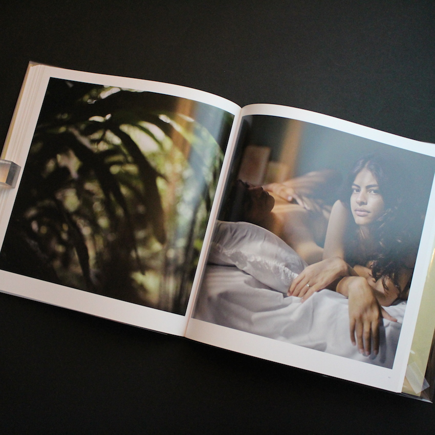 ドイツ系ブラジル人の女性写真家モナ・クーン(モナ・キューン)の写真集「Native」。大判のヌード・ポートレート作品が有名な写真家で、最近はボッテガ・ヴェネタやジェームス・パース等のコレクションブランドとのコラボレーションも行っているコンテンポラリー・フォトグラファーの第一人者です。ヌーディスト写真で有名な写真家ジョック・スタージスに個人的にアドバイスを授かっていた時期もあり、自然で親密な雰囲気のポートレートには、透き通るような美しさがあります。本書は、モナ・クーンが20年ぶりに戻った故郷ブラジルを舞台にした作品で、個人的な旅の中で描いた自分自身のぼんやりした願望と夢の中の世界が表現されています。モナ・クーンは、作品を創る最初は「彩色」からイメージするようですが、本作では熱帯雨林や自然風景豊かなグリーンをベースにしています。グリーンが、光や影、柔らかなポートレートとバランスよく融合し、繊細で美しい世界が創造されています。