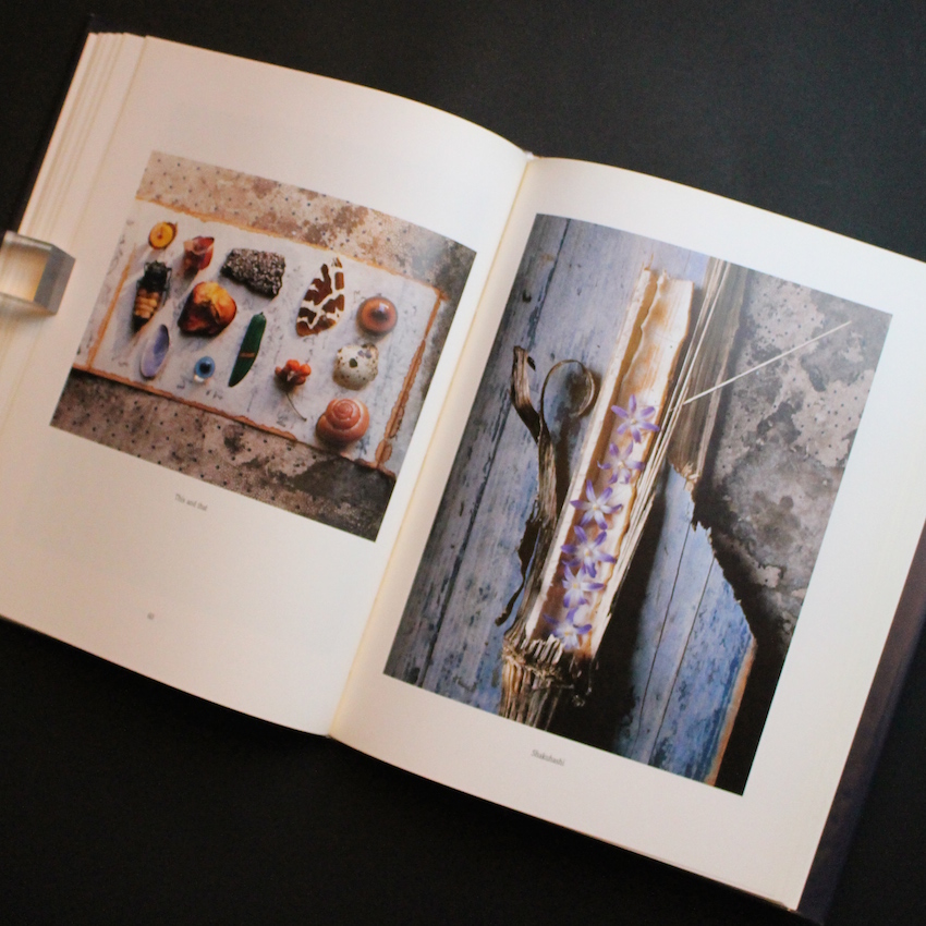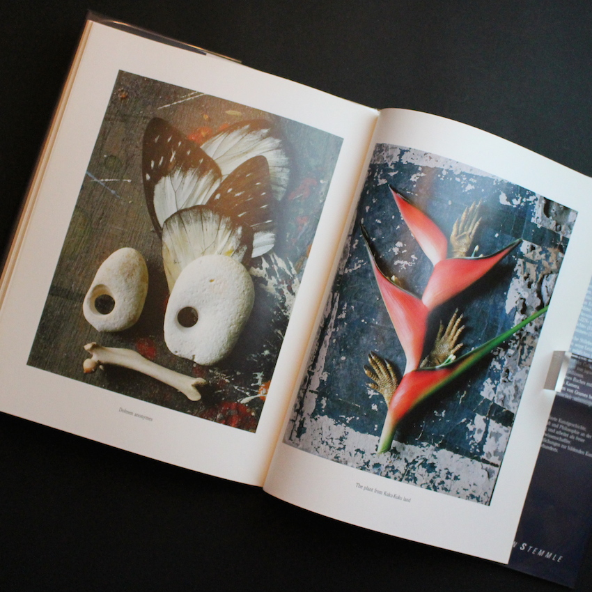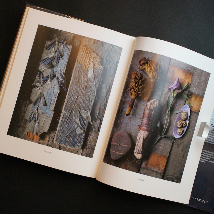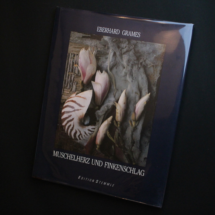 ドイツ・ケルン出身の写真家エバハード・グラムスの写真集『Muschelherz Und Finkeschlag』。直訳すると「貝殻の心とフィンチ(小鳥の一種)の衝撃」。昆虫や動物の残骸や死骸、植物の茎・葉・花びら等の断片、貝殻・石・ガラスの破片等言わば生命を失ったものたちを、厳格な組成により、新たな静物に蘇生させる神秘的なスティルライフ・フォトグラファーです。グラムスの独自のスタイルの背景には、学生時代に美術史のみならず民族史を学んだ経験が大きく反映されています。また、インドの民族学や日本の美意識にも大きな影響を受けており、日本の芸術家では葛飾北斎や歌川広重の有形表現に影響を与えられたと語っています。本書内では、「yume no yoru」「sophisticated sushi」など親日精神が伝わる作品もいくつか収録されています。歴史・文化・民族への尊厳と生命の神秘が表現された静物写真の独特な世界観は、類を見ない美しさに溢れています。