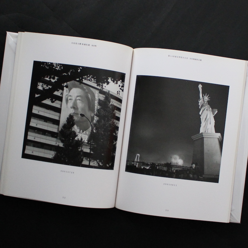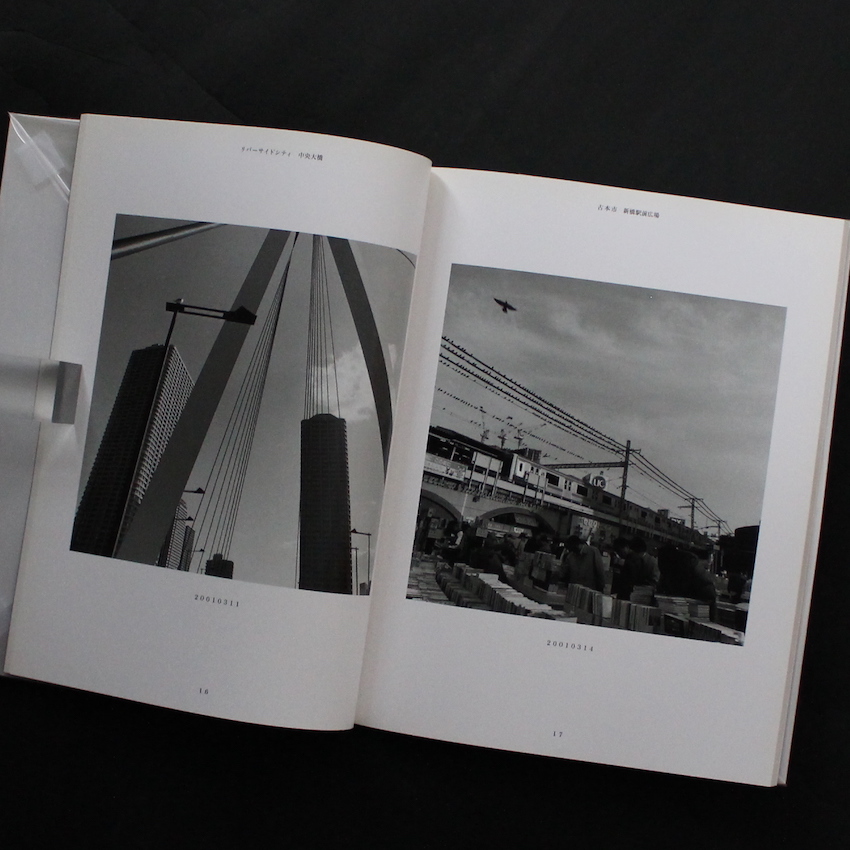 日本の写真家・安達洋次郎(1943-)による写真集『東京日記 2001』。資生堂宣伝部のスタッフカメラマンとして広報誌『花椿』をはじめ広告宣伝の写真撮影を担当していた安達。広告の中でも花形といえる世界で、洗練された感性を育み、広告的な美のあり方を表現してきた安達ですが、仕事に追われ自分を見失いかけていたことに気が付き、写真を始めた学生時代の原点に戻り、自分の住む東京の人たちを撮るべく、街へと繰り出したそうです。そして、東京の人をテーマに、1974年に個展「ぐるりの人たち」を開催し、以後も同テーマの展覧会を続けるなど、東京街歩きのスナップは安達のライフワークに。本書は2001年の1年間に撮りためた図版で構成された一冊。元旦から大晦日までに日々写された図版の中には、「人情のない」「自然のない」という東京の一般的なイメージとはかけ離れた、祭りや催事、名所や公園など安らぎさえ感じられる美しいスナップが多数収録されています。