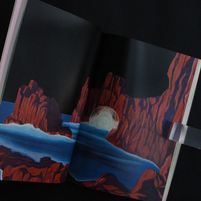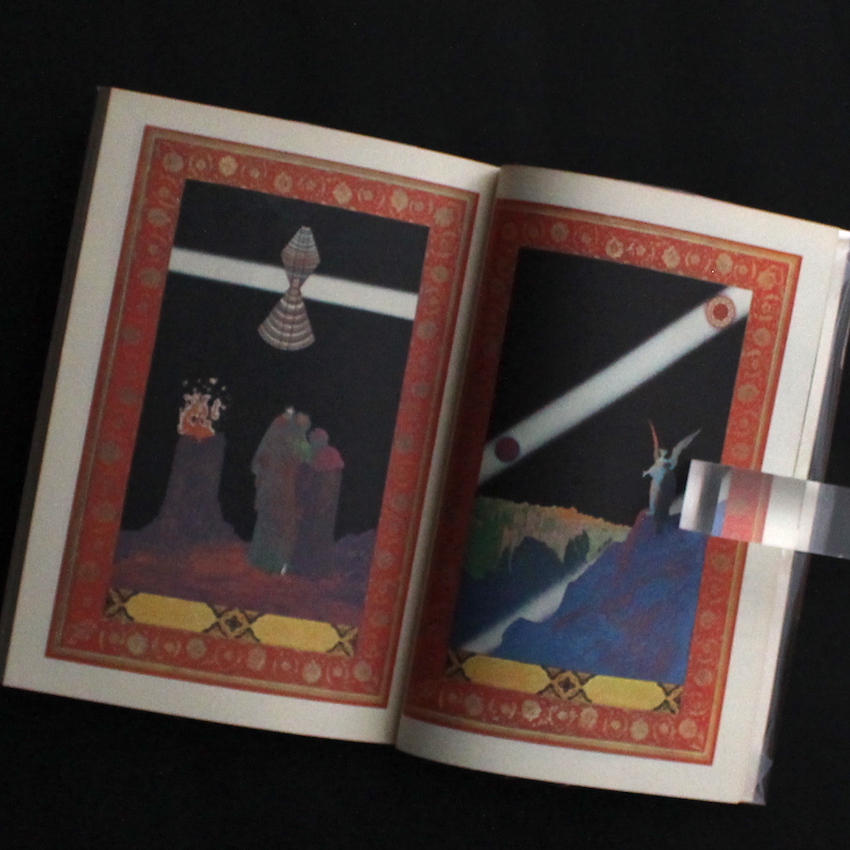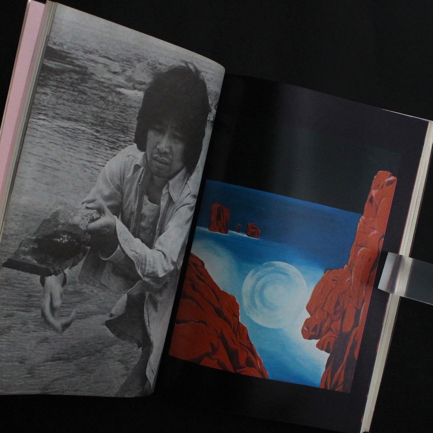 アート雑誌『芸術生活』の1974年11月号。表紙をはじめ巻頭を飾るのは横尾忠則の新作「CLEAR LIGHT」(啓示)。付随したテキスト「至上界遍歴の物語」で美術評論家・日向あき子は、「横尾忠則の今度の十二枚の『啓示』シリーズが、またもう一つの彼の転機を示しているのはたしかなのであり、このシリーズの世界はダンテが『神曲』の中で最初にたどりつく「至上界」の遍歴にたとえられるのではないかと思う」と記しています。表紙にもなった「アダムとイブ」から始まり、「聖書的な雰囲気」をもっている本作は、新たな横尾の一面を知らしめたと日向を続けています。そのほかに本書には、大倉舜二がアメリカの建築家・フランク・ロイド・ライトの建物を撮り下ろした「フランク・ロイド・ライトの呪術」(テキストは草森紳一)や作家・安部公房の対談シリーズでは、言語学者の西江雅之を迎え「日本人の言語と感性」について語られています。横尾の連載も収録されており、横尾忠則ファンには資料にもなる1冊です。横尾忠則サイン入り(Signed)。