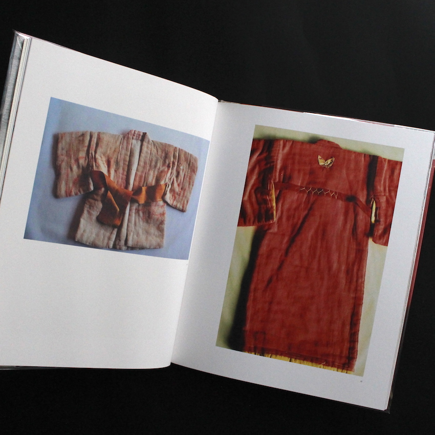 日本の女性写真家石内都の写真集『幼き衣へ(Signed)』。町の空気や気配、建物の佇まい、そして人間の匂い。。。三部作『絶唱・横須賀ストーリー』『アパート』『連夜の街』に代表される石内の初期作品群は、「町」や「建物」のランドスケープを通して、目に見えない「人々の営み」を描写し続けるスタイルが中心でした。そんな石内が、対象を「ヒト」「モノ」に移し、被写体との距離感をより縮めて、ヒト・モノの背景や不可視なストーリーを紡ぐきっけとなったのが『1・9・4・7』でした。以降『Mother's』『ひろしま』等接写シリーズの傑作を数々と発表してきましたが、本書の題材は「着物」。江戸後期から昭和初期に子どもの無事成長を願う母親によって、日本各地で作られていたという「百徳着物」。父母の着物の端切れなど様々な布を合わせて作られた着物は、母親の愛情や子どもの無事を願う祈りが込められ、日本の古き良き伝統・文化が垣間みれます。女性らしい繊細な視点と絹織物の描写に長けた石内が、素材のテクスチャー、奥深いカラー、丁寧な刺繍に見られるハンドワーク等を見事に描き写し出しています。写真家サイン入り。