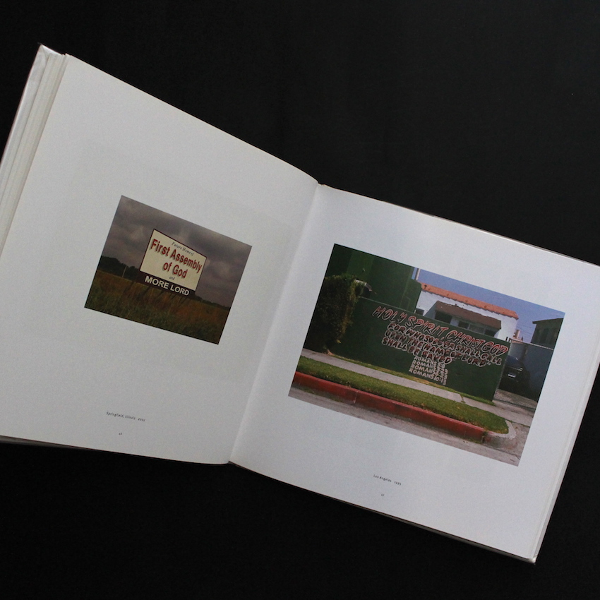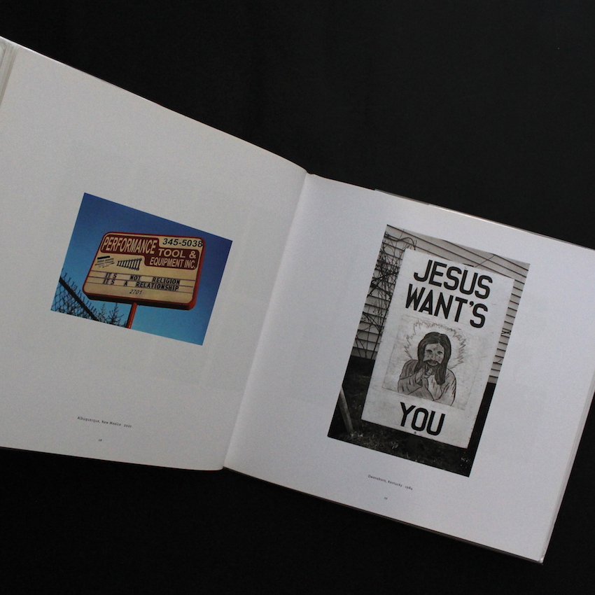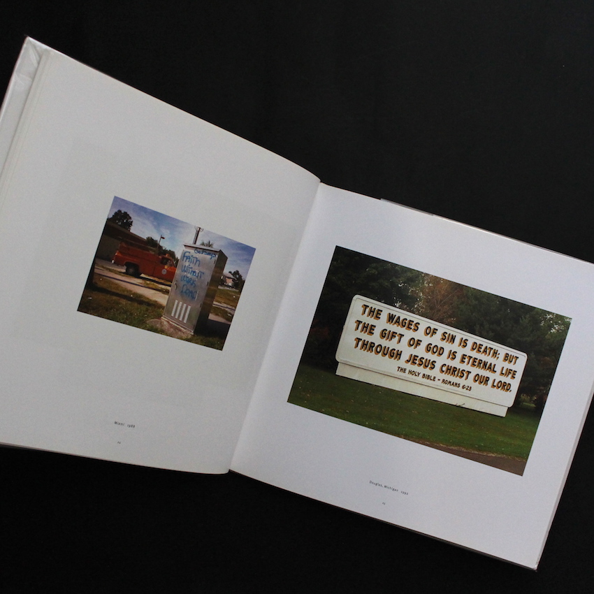 アメリカの写真家サム・フェントレスの写真集『Bible Road』。1955年デトロイトで生まれ、現在はセントルイスを拠点に活動を続けるフェントレス。大学はニュージャージーのプリンストン大学。プリンストン大学と言えば、戦後アメリカを代表する写真家であるフレデリック・ソマーやエメット・ゴーウィンが教鞭を執っており、フェントレスは、在学中から卒業後も特にゴーウィンと親交を深め、本書でも敬意を述べています。フェントレスの専門は建築写真で、コマーシャル・パブリック問わず様々なスタイルで撮影を行ってきましたが、80年代より25年以上ライフワークとして取り組んでいたのが「ロードサイド・メッセージ」の撮影。学生時代に聖書を読んでいた経緯と、仕事柄様々な建物やビルボードと接するうちに気になり始めた「路上に書かれたメッセージ」。ウォーカー・エバンスやロバート・フランクらによるドキュメントとも重なるフェントレスが写し出した「もう一つの知られざるアメリカ」そして「神へのメッセージ」。