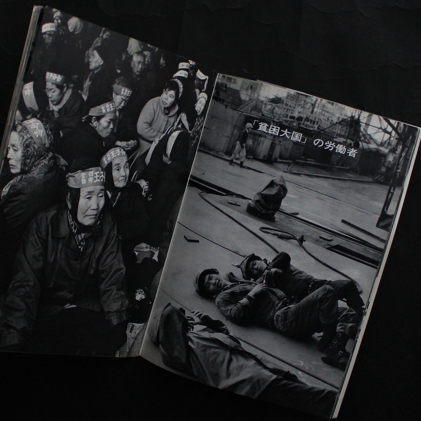 日本の写真家、指田実の写真集『団結かたく旗たかく』。1928年生まれ。機関紙連合通信社を経て、国際通信社に入社。日本機関紙通信社で写真部員、写真部長として報道カメラマンとして活躍し、1963年日本リアリズム写真集団の結成に参加。雑誌『経済』、『労働農民運動』などで作品を発表し、1972年に腎不全で亡くなっています。本書は、“遺作作品集”とあるように、指田の死後に、機関紙連合通信社と日本リアリズム写真集団の関係者によって作られたものです。60年代の高度成長のなかで急激に変化していく社会とともに生活がほころびを見せていく労働者、農民、市民などの実情や闘争を撮影し、発表してきた指田の作品をシリーズごとに掲載。指田の仕事の底にあるのは、「人間性を無視した過酷な労働を強制し、公害をまきちらし、市民生活を破壊しながら、ただ生産をあげることだけを追求してきた大資本と政府にたいする指田さんの強い怒り」(あとがきより)だったそうですが、社会的なテーマを扱いながらも、写真の雰囲気は穏やかさがあり、指田の人間性ともいえるかもしれません。