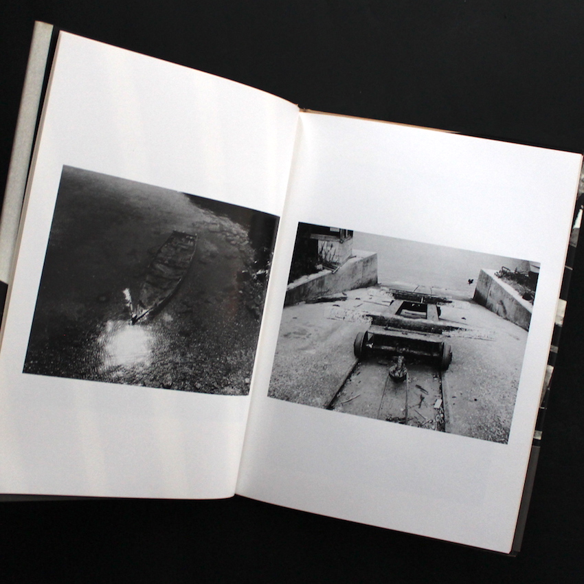 日本の写真家、松元省平の写真集『人間の村』。1948年生まれ、1975年に佐賀大学理工学部数学科を卒業し、「モダン・フォート・セミナー」の主幹をしていた松元。現在は鹿児島に居を移し、天体写真に注力しているようです。本書は、70年代後半に長崎県中部の崎戸島にある廃坑を写した写真集です。この島にあった崎戸炭砿は1968年に閉山していますが、本書に寄稿している小説家・井上光晴が10代の頃に炭鉱員として働いていた場所でもあります。閉山後の崎戸を3年に渡り取り続けた松元は、「わたしの視界を覆う、巨大な墓石のような無人アパートの黒い影。くり返しくり返し、まるで何かにとりつかれたように吹く生暖かい風。それらすべてが私を震わせる」とその第一印象をあとがきで述べていますが、この産業亡き後の朽ち果てた建物、寂れていく街をモノクロで淡々と写し出しています。同じ長崎で言えば、奈良原一高が撮った軍艦島にも似た雰囲気を感じさせます。