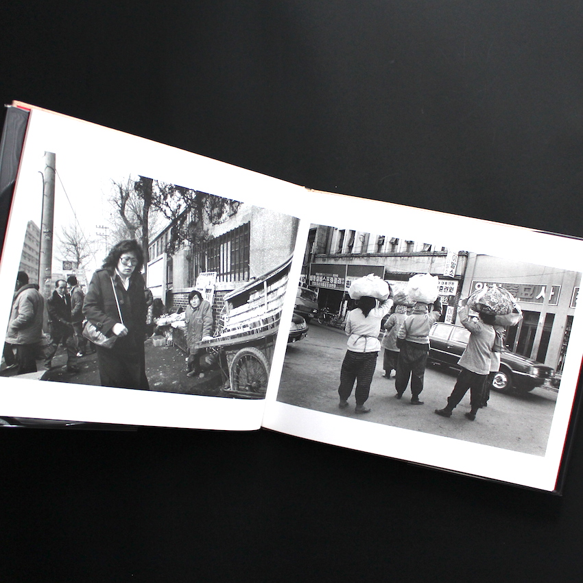 日本の写真家・鷲尾倫夫の写真集『原色の町 -韓国 1983〜1988-』。1941年東京生まれ、海員学校を卒業した後、海運会社に就職して、海外向け貨物船の乗組員として働いていたという異色の経歴を有する鷲尾倫夫。その間の洋上生活において、のべ50以上の国々を船でまわったそうですが、その間偶然の出会いを機に写真を取り始め、70年代初頭にニコンサロンで初のエキシビジョンを開催、それ以来プロカメラマンとしての活動を本格的に行い、雑誌『Focus』の創刊時から専属カメラマンとして活躍、その関係は休刊に至る20年近く続きました。その間にも、自身の創作テーマに基づいた数々の個展を開催していますが、本書は80年代半ばに、韓国で撮影された図版で構成された1st写真集。ソウル・釜山・大邸・南旨・仁川・馬山を舞台に、20回を超える訪韓で出会った人々のスナップやポートレートが収録されており、特に若い女性たちのピュアな視線が、センチメンタルな気分にさせる素晴らしい作品の数々です。