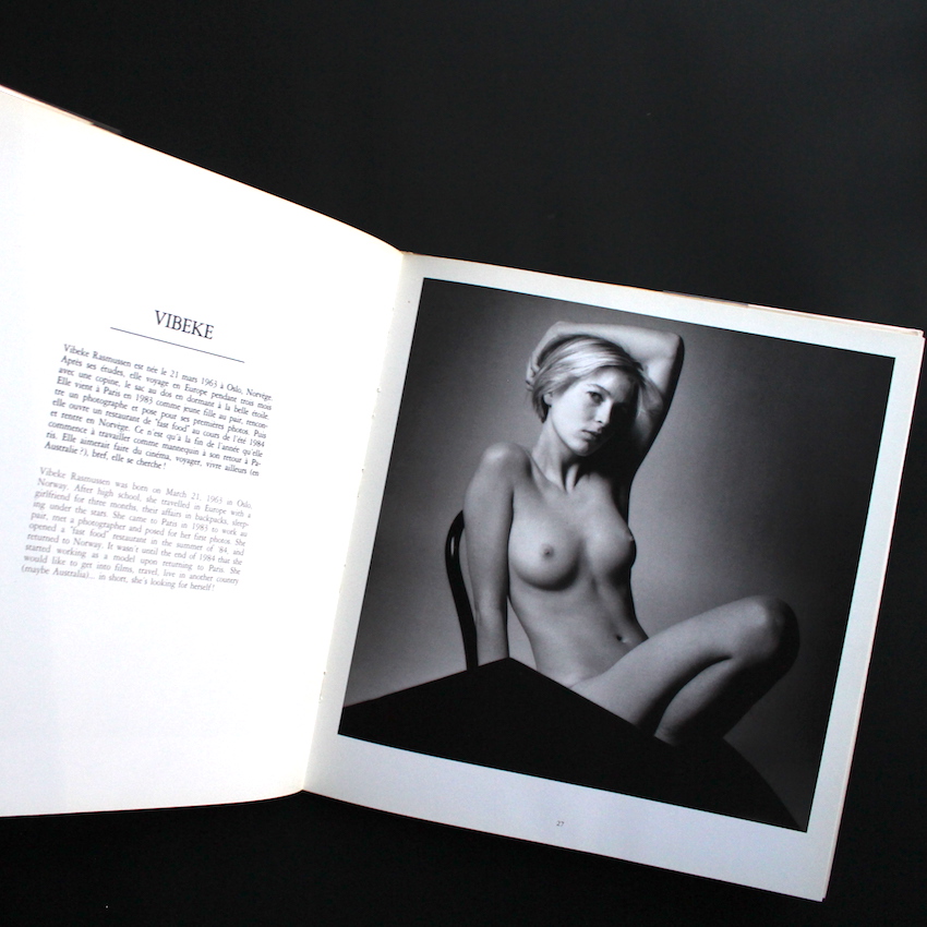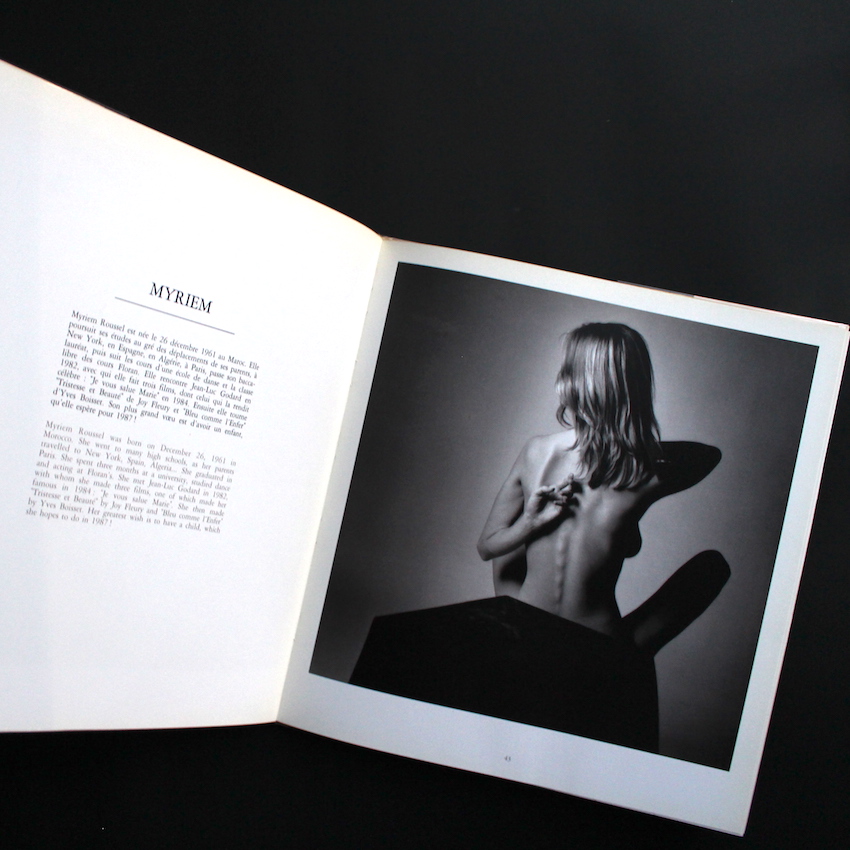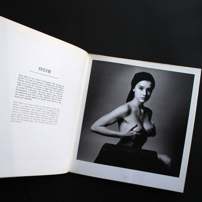 フランスの写真家ジャンルー・シーフの写真集『Torses Nus』。1933年パリ生まれ、1950年代よりフリーのジャーナリストとして報道写真の分野で頭角を現し、マグナム・フォトに所属したものの1958年に脱会。その後は、より自由な写真を求めて、ハーパース・バザーやヴォーグなど主にファッション写真家として活躍したジャンルー・シーフ。特に同時代に活躍した写真家ギィ・ブルダンとのフランス版ヴォーグでの共演は大変注目されました。斬新なコンポジション、魅惑的なストーリー、エレガントで時に挑発・官能的な美しい図版はこれまでに数々のファンを魅了し、日本でも80年代そして2000年以降もたびたびエキシビジョンが開催されています。本書は、80年代に刊行されたシーフの代表作で『Torse Nus = Naked Torso』の通り、女性モデルが大半を占めるヌード・ポートレート集で、見開きの左に簡単な紹介テキストで、右に図版を収録。Jane Birkin、Charlotte Ramplingらも名を連ねています。