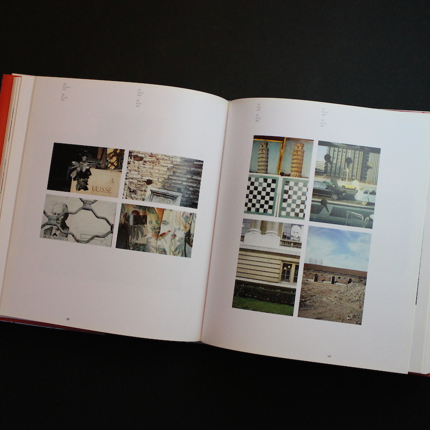 イタリアの写真家ルイジ・ギッリの写真集。1978年刊行の『Kodachrome』の再版や、2014年にみすず書房より刊行された『写真講義』により、国内外で人気が再燃しているルイジ・ギッリ。美術、建築、音楽等に造詣が深く、イメージに捉われ、イメージを通して思考を続けたアーティスティックな写真家です。本書は、1970年代前半、当時無名であったルイジ・ギッリの才能にいち早く惚れ込み、ギッリ初の個展を企画した一人でもあるマッシモ・ムッシーニの編集により、2001年に刊行された大判写真集で、図版数415、計382ページにも及ぶ大著。現存するギッリの写真集の中では、図版の収録数等を鑑みると最大のボリュームを誇り、内容的にもギッリのベスト版と評価されている一冊。テーマ別に詳細に分類されたページネーション、ジョルジョ・モランディとアルド・ロッシのアトリエ写真を見比べて楽しめるような心憎い演出も魅力的。70年代そしてスタイルを変えた80年代と、20年強に及ぶギッリのカメラワークの全貌が見事に集約されたおすすめの作品集。テキストはイタリア語。