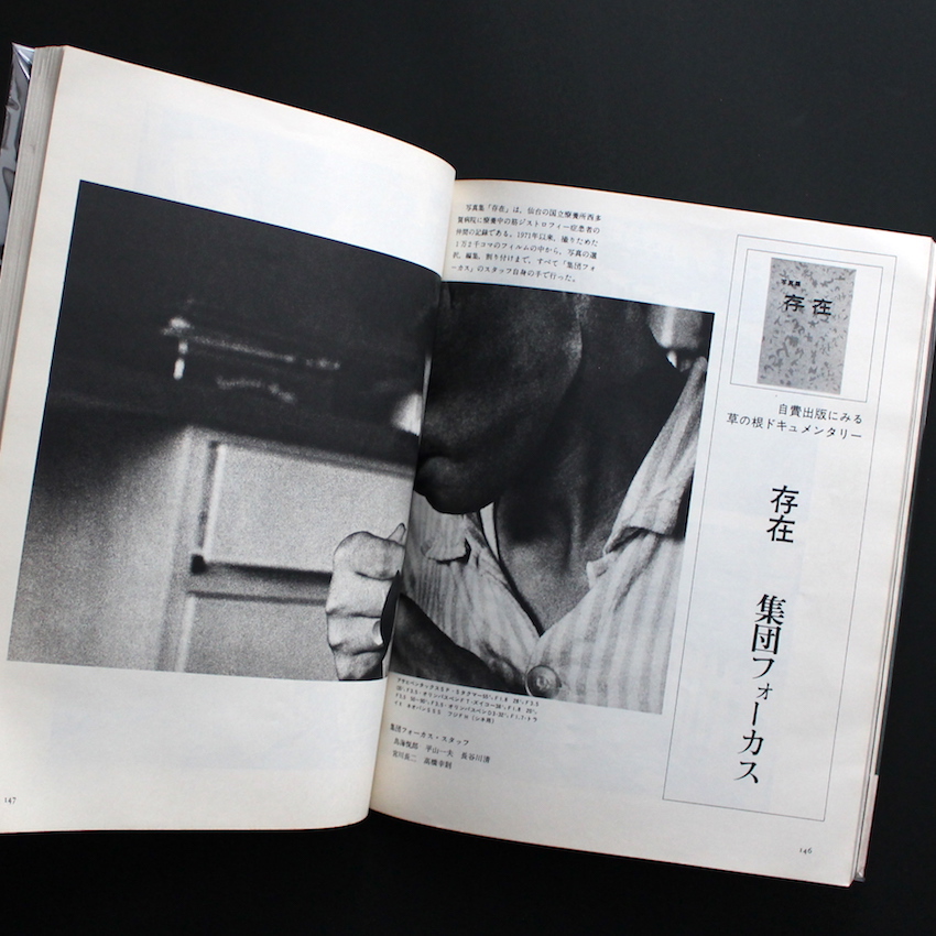 本書は、カメラ誌『アサヒカメラ』の1977年4月号・増刊で、特集は「現代の写真'77」。特集1「理想の女から生身のおんなへ」では、立木義浩や一村哲也らのヌード写真、特集2「いま騒がれている問題CM映像の内幕」では、デザイナー・木村恒久や写真家・早崎治らによる座談会のテキストが収録されています。続く特集3「きょうの写真の全貌」では、多木浩二・大辻清司の対談のもと、篠山紀信や高梨豊、土田ヒロミ、秋山亮二、さらには濱谷浩、久保田博二ら15名の作品が掲載されています。その他特集4-5では、写真賞受賞作家やアマチュアの年度賞作家の作品などが取り上げられており、最後の特集7では「自費出版にみる草の根ドキュメンタリー」というテーマで、平良孝七による名作「パイヌカジ」や、足尾銅山のドキュメンタリー作品で著名な佐野聖光による「閉山日記」、さらには集団フォーカスによる「存在」などが紹介されています。