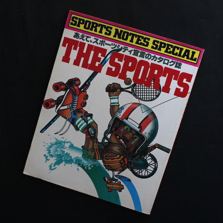 1970年代から80年代にかけて、スポーツ愛好者からファッショニスタまで、大人から若者たちまでを虜にしたスポーツ・ムック本シリーズ『スポーツ・ノート(Sports Notes)』。。メジャーなスポーツからマニアックなものまで、総数50近いタイトルを発行したほか、増刊号・Special Issueもいくつか出しており、本書もそのうちの一冊で、計350ページに渡ってスポーツ全般の紹介がカテゴリーを分けて紹介されています。取り分け、総数427を紹介した「シューズ」を始め、「タンクトップ」「Tシャツ」「ポロシャツ」「スウェット(トレーナー)」「ジャージ」「ダウンジャケット」などの衣類、さらには「スポーツバッグ」や「スポーツタオル」などのグッズの写真図版もマニア必見です。また、ジャンル別のページでも「ウェット」「サーフボード」「ユニフォーム」「サングラス」「ナイフ」「スポーツウォッチ」「BMX」「(野球)グラブ」「(テニス)ラケット」などの図版が収録されており、70年代のファッション・スタイルも楽しめる一冊です。