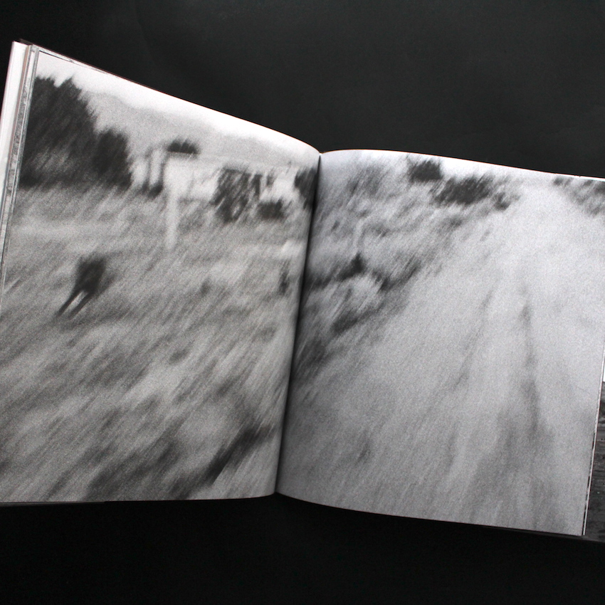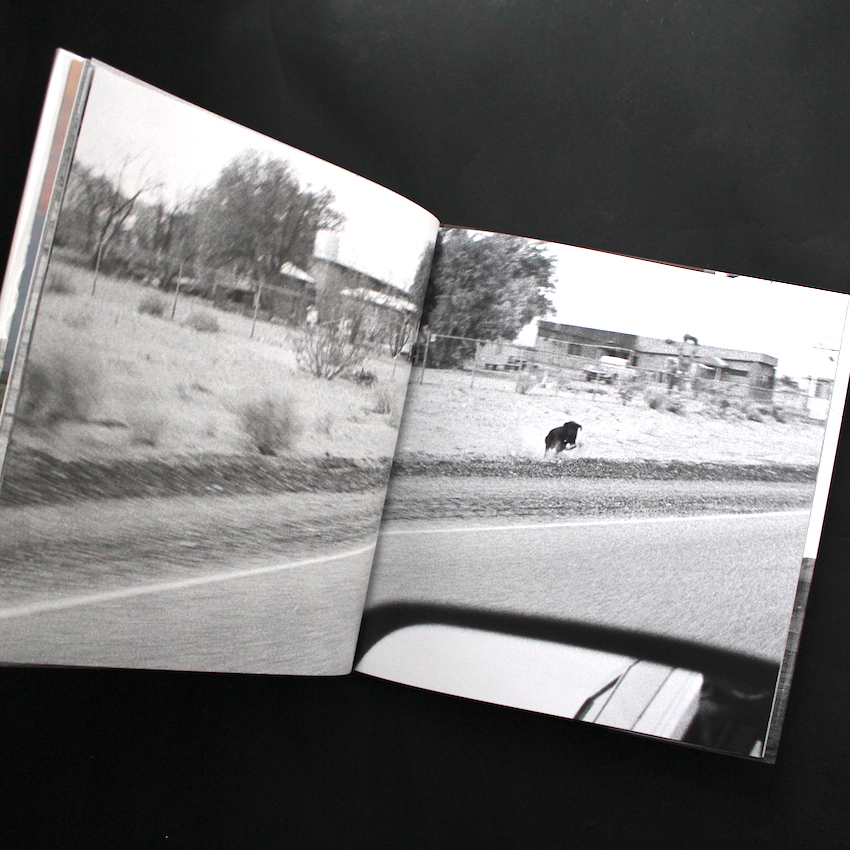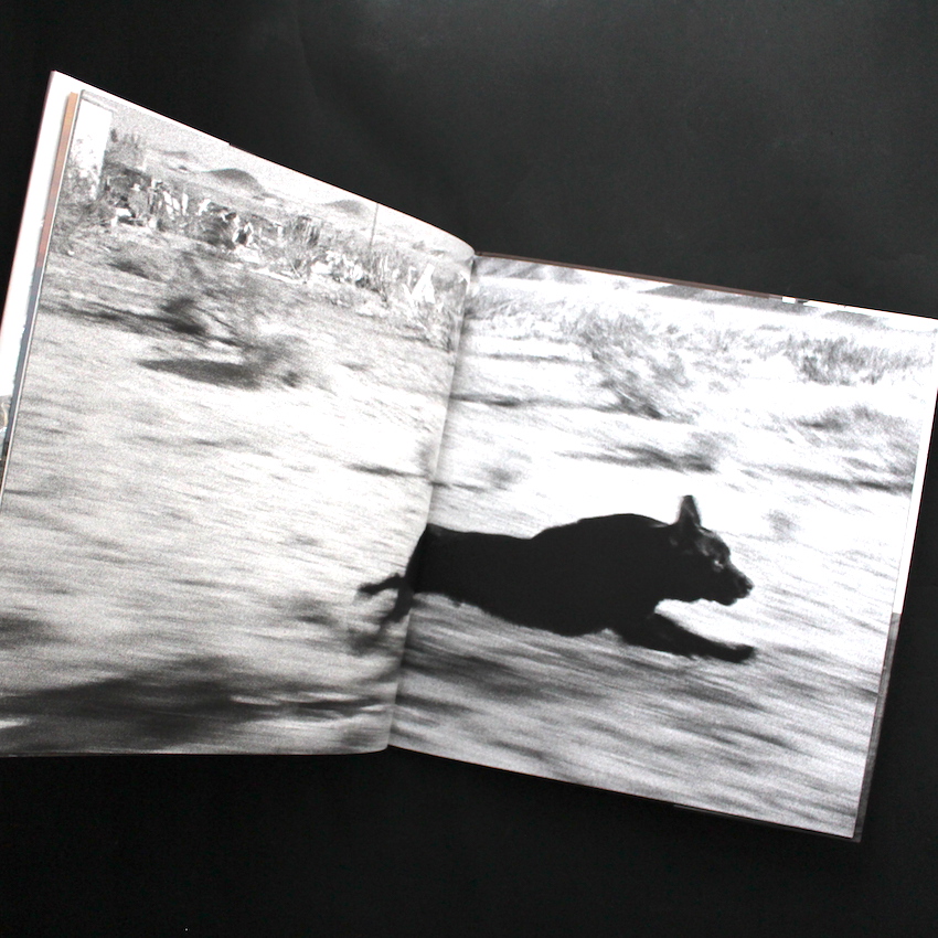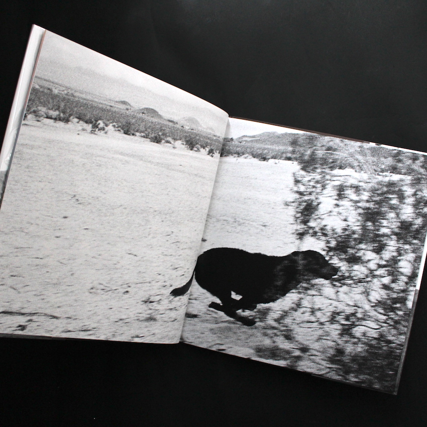 アメリカの写真家、ジョン・ディボラの写真集『Dogs Chasing My Car(Signed)』。1949年生まれ、カリフォルニア大学にて芸術修士号を取得し、1988年からは同大学で教授として教鞭を執っていたジョン・ディボラ。2018年にイギリスの出版社「MACK」から発行された『VANDALISM』も記憶に新しいですが、ロサンゼルスの廃墟を舞台に、ドキュメンタリーと芸術の中間ともいえるコンセプチュアルな作品で知られています。本書は、2004年にアメリカの「Nazraeli Press」から出た写真集で、タイトルの通り、車を追いかける犬の写真を躍動感たっぷりに写し出したものです。南カリフォルニアの砂漠にある住宅の撮影をしていたディボラは、砂漠を走行しているときに車を追いかけてくる犬と出会い、1996年に35mmカメラを使った撮影を試みます。犬が車に向かって走ってくることが確認できれば、片手で車を操作しながら、カメラを窓の外に出して撮影をしたそうです。並走する犬をダイナミックに写し出した(ときに大きくぼけてしまっていても)、ディボラらしいコンセプチュアルな作品となっています。謹呈署名入り。