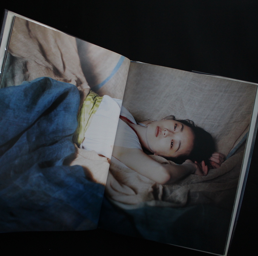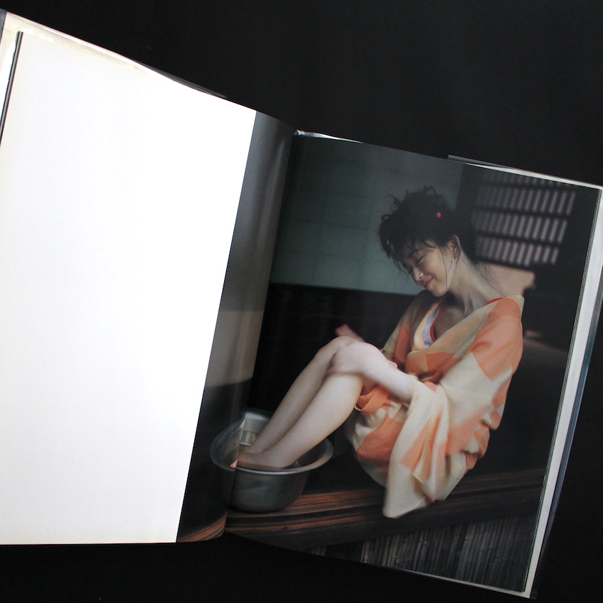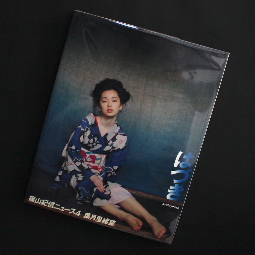 日本を代表する写真家・篠山紀信の写真集『篠山紀信ニュース4 はずき』。グラビアやアイドル、ヌードなどの女性のポートレートをはじめ、視覚的欲望を満たすべく多彩なフィールドで「時代の空気感」を描写し続けている篠山紀信。本書は「1994年=『現在』という時代についての篠山紀信による『報告書』」として刊行された『篠山紀信ニュース』の第4号(最終号)。1993年に山田太一原作・脚本のドラマ『丘の上の向日葵』で女優デビューすると、新進女優として時代の寵児となった葉月里緒菜を特集した本号は、巻末の篠山と葉月の対談では「こよなく美しく狂おしく、だね。葉月里緒菜が内に秘めた『狂気』みたいなのが、意図せずににじみ出てる」と篠山は話していますが、和装に身を包んだ葉月は虚ろな表情を浮かべるばかりで、どこか人形じみた魔性の姿。第2号でモデルを務めた藤谷美和子と同様に、葉月も表舞台から姿を消してしまいますが、2人に共通するような内面(それは狂気といえるかもしれませんが)を、篠山は被写体として見据え、写し出していたとも思えます。