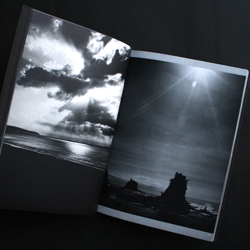 日本の写真家・沢本吉則の写真集『海の刻一刻 - 房総半島』。1932年生まれ。航空写真で知られ、また、観光ポスターやカレンダーなどコマーシャルを中心に活動をしていた沢本が、「半商業的な本当の仕事」として選んだテーマが房総半島でした。戦後まもなく友人と2人で房総を一周する自転車旅行を決行し、また、仕事では内房・外房へでかけ各市町村のポスターなどを手がけていた沢本吉則。自身の親しんだフィールドであり、「深い絆」のある房総の海を中心に、「僕なりの心象で、その自然を語り、自然をたたえ、自然をうたってきた」という写真によって本書は構成されています。空撮を交えて広がる海のランドスケープは、自然の力強さや壮大さをとらえ、コマーシャリズムとは無縁の風景。緑川洋一が写した穏やかな瀬戸内海のような詩的さとは異なるベクトルで、海や浜辺、岩礁などの様子を7章にわたって写し出していますが、半商業的を標榜し、飛沫を上げる海のように荒々しくも自身の創作を追求した沢本の胆力が感じられる1冊です。第2刷。