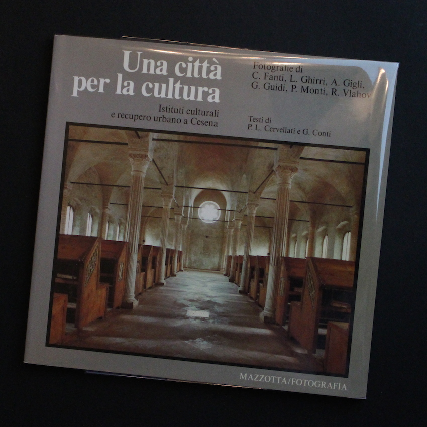 ルイジ・ギッリを始めイタリアを代表するフォトグラファーによる写真集「Una Citta Per La Cultura」(英訳:A City For Culture)。本書は1985年に開催されたエキシビジョンに際し刊行されたもので、チェゼーナの文化機関と都市再生のテーマの下、文化遺産に富んだイタリアの建築・インテリア・ストリート写真等が収録された作品。イタリア近代写真の父とも評されるPaolo Montiによるチェゼーナの街から始まり、近年再評価が高まる写真家グイド・グイディ(Guido Guidi)によるストリート、イタリア・カラー写真のパイオニアで「写真講義」の刊行により国内でも人気が高まるルイジ・ギッリ(Luigi Ghirri)による世界最古の市民図書館マラテスティアーナ図書館、その他Corrado Fanti、Attilio Gigli、Riccardo Vlahovによる文化センターや劇場写真等がモノクロ・カラーで収録されています。表紙はルイジ・ギッリによるマラテスティアーナ図書館の講堂写真。テキストはイタリア語。