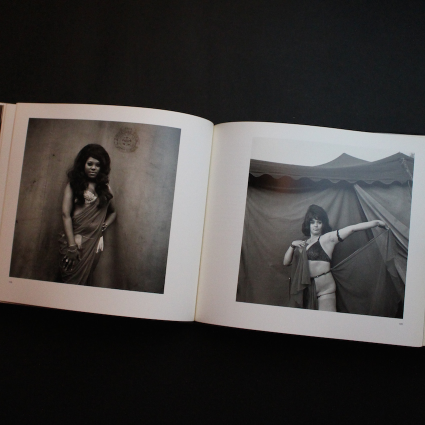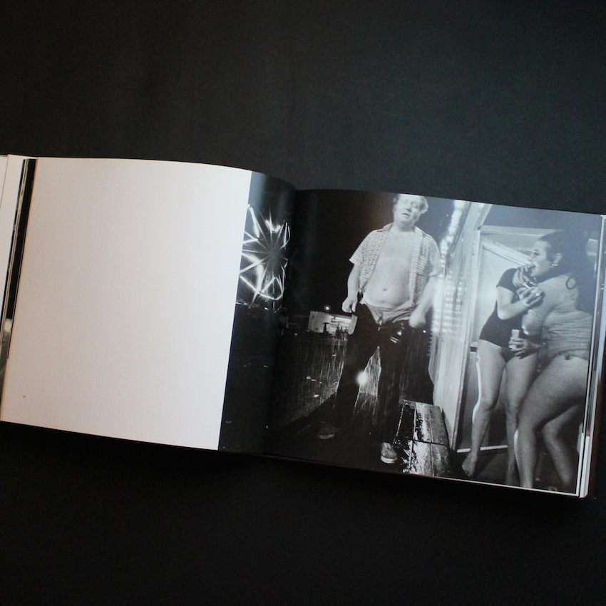 アメリカ・ボルチモア出身のマグナム・フォトの女性写真家スーザン・メイゼラスの写真集「Carnival Strippers」。メイゼラスはハーバード大学で修士号を取得し、映像フィルムを用いた教材研究を行っていましたが、20代半ばに写真家に転向、その後は主にニカラグアや中南米の政治問題を取り上げたフォト・ジャーナリストとして活動し、数々の賞を受賞しています。本書は、メイゼラスが写真家転向後1976年に刊行した1st写真集の改訂版。72年から4年の歳月をかけてアメリカ南部を巡業するストリップ団をドキュメント、彼女達のパフォーマンス・シーンから舞台裏まで密着して取材した作品集。本書では、図版のみならずストリッパーのインタビューも詳細に記載されており、改訂版では彼女達のインタビューを収めたCDも付属しています。ハーバード出身のエリート写真家が、ダークサイドな世界に生きる同年代の女性達の真実を明らかにし、人生に勇気と希望を見出したドキュメンタリー作品の名作。CD欠。