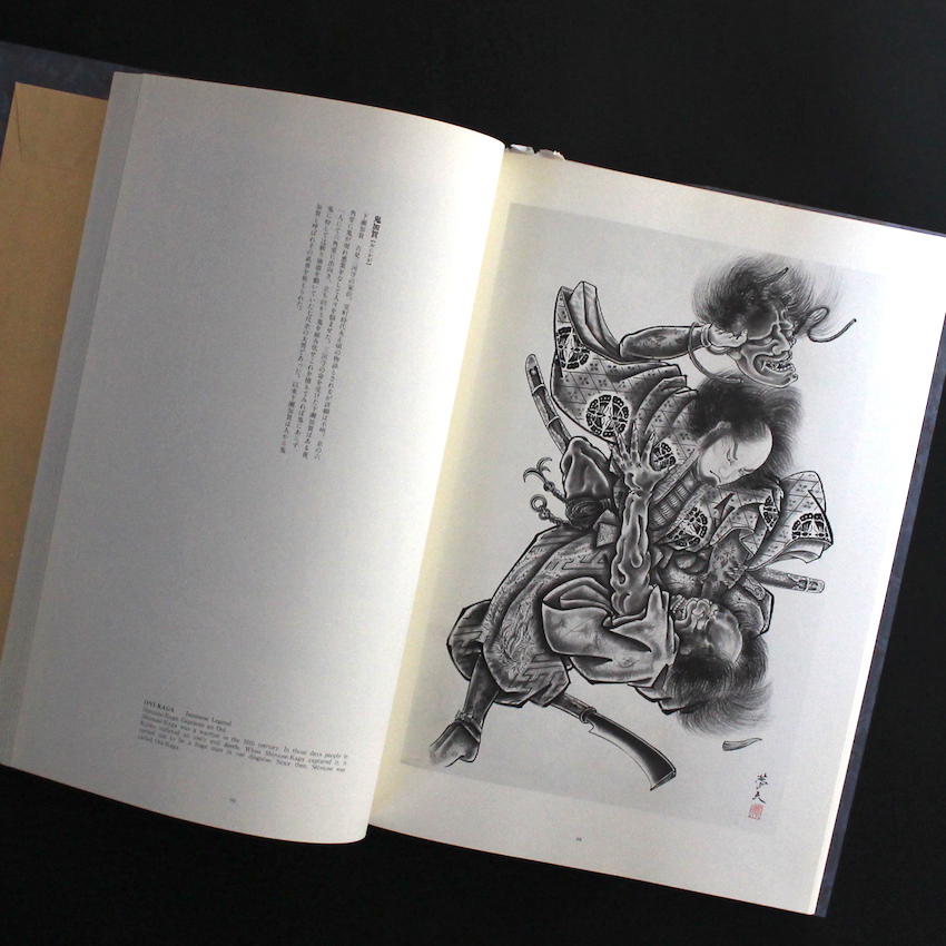 日本の刺青師、三代目彫よしの作品集『百鬼図 三代目彫よし / 100 Demons of Horiyoshi Ⅲ』。1946年生まれ。1967年に初代彫よしに彫ってもらい、弟子入りを志願。その後、1971年に弟子入りし、1979年に「三代目彫よし」を襲名しています。約7000人もの人々に刺青を彫ってきた伝説の彫師であり、80年代から海外のタトゥー・コンベンションにも参加するなど、世界的に活動している三代目彫よし。本書は、三代目彫よしが描いた百の鬼のオリジナルの原画を収録した作品集です。その出発点は、サンフランシスコの刺青師で日本でもファッション・アイテムなどのデザインで知られるエド・ハーディで、三代目彫よしの友人でもあるエドに「百の鬼を描こうと思う」と告げたことから制作は始まったそうです。伝説や伝奇に残る様々な鬼と、戦った英雄たちを描いており、刺青の下絵であり、芸術性は意識していないという本人の言葉もありますが、伝統的な技法に加え、創作的な表現を用い、和彫ならではの独特の世界観を生み出しています。刺青シール・付属。