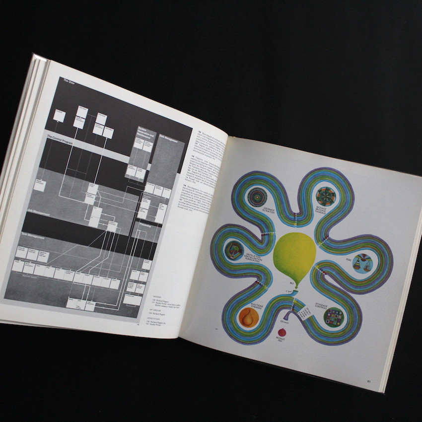グラフや表、図解、路線図などのグラフィックデザインを集めた『Graphis Diagrams』。スイスで1944年に創刊されたデザイン誌『graphis』。世界各地の優秀なデザインを紹介した雑誌で、日本でも50〜70年代に発行されたものは人気があり、その年鑑「graphis annual」も良質なグラフィックデザインをまとめて見ることができるので同じく人気があります。現在『graphis』は、拠点をニューヨークに移し、デザイン年鑑的なものを中心に発行しているようです。本書は、デザインをテーマごとにまとめたシリーズで、優れたダイアグラム(線図、図表)をコンパイルした1冊です。同様に『record covers』『ephemera』といった内容も出ていますが、テーマを絞ったニッチな内容にもかかわらず、その収集力や編集力が光る内容です。ペンタグラム、ソール・バス、ハーバート・バイヤー、中垣信夫など著名なデザイナーの作品を収録。情報を視覚化するというグラフィックデザインの真髄がつまった作品集です。
