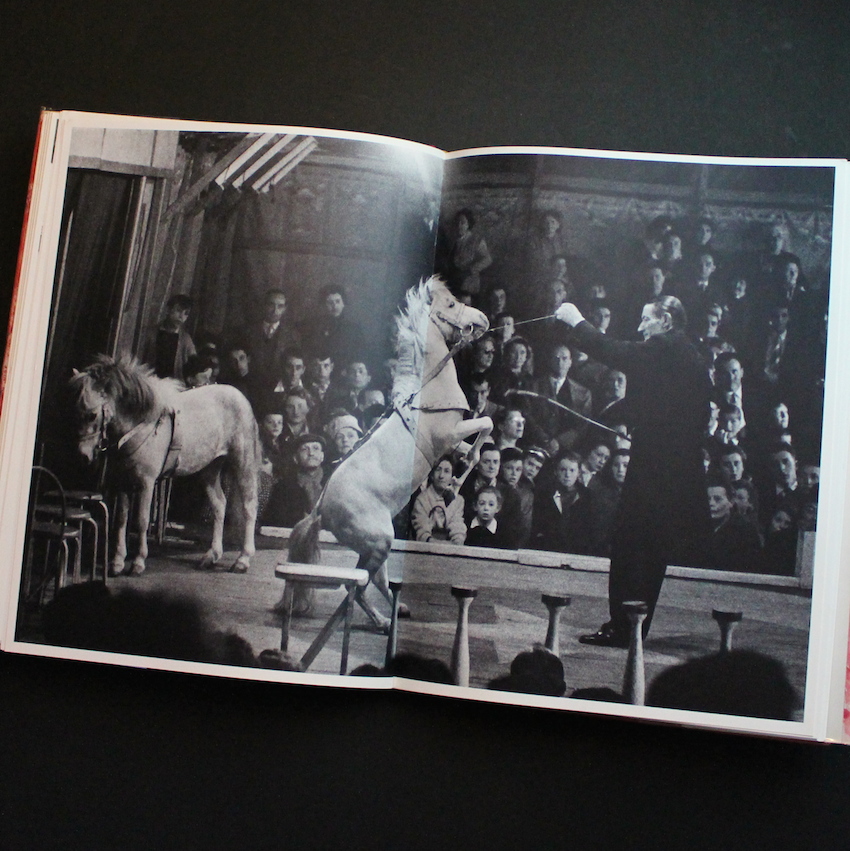 リトアニアに生まれ、パリで活躍し、アンリ・カルティエ-ブレッソン、ブラッサイ、ロベール・ドアノーらと並び20世紀を代表するフランスの写真家イジスの写真集「Le Cirque D'Izis」。パリに魅せられた異邦人イジスは、パリの魅力溢れる光景と多くのアーティストによるテキストを交えた名作「Paris Des Reves / 夢のパリ」 を始め、イギリスやイスラエル等に関する写真集を、著名な詩人やアーティストとの共著という形式で魅力な作品として発表しています。本書は、ヨーロッパ各地のサーカス模様を収録した作品集で、パフォーマンス・シーン、観衆の光景、舞台裏の様子等をページいっぱいにレイアウト、さらに当時の広告や新聞、イラスト等も交え、デザイン性に富んだ編集・構成となっています。また、詩人ジャック・プレヴェールのテキスト、親交の深かった画家マルク・シャガールによるサーカスの絵画も本書の魅力を一層引き立たせており、著名なアーティストの知が結集した不朽の名作写真集です。